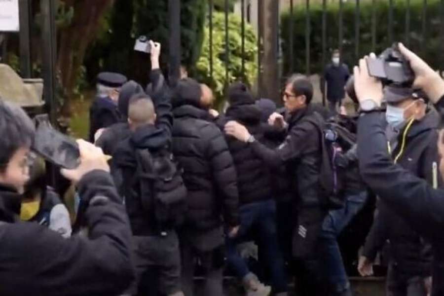 चिनियाँ दूतावास नजिक प्रदर्शनमा उत्रिएका हङकङका प्रजातन्त्रवादी कार्यकर्तामाथि कुटपिट