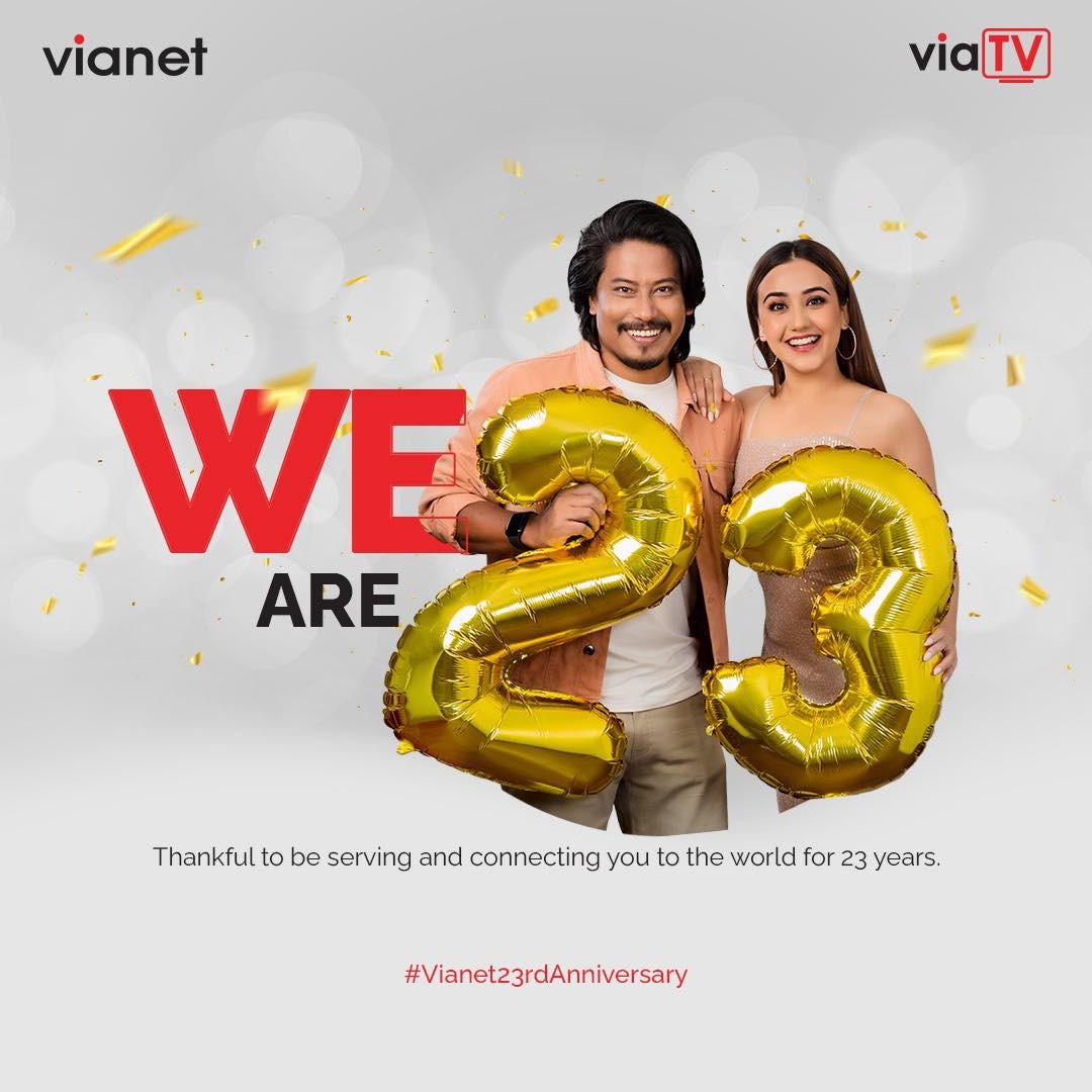 काठमाडौं । नेपालको सबैभन्दा ठूलो इन्टरनेट र टिभी सेवा प्रदायक मध्यको एक कम्पनी भायानेट कम्युनिकेसन्सले आफ्नो सञ्चालनको २३ वर्ष पूरा गरेको छ। उत्कृष्ट डिजिटल सेवाहरू मार्फत ग्राहकहरूलाई सेवा दिने उद्देश्यका साथ सन् १९९९ मा स्थापित भएको कम्पनीले आफ्नो २३ औँ वार्षिक उत्सब हिजो (सोमवार) मनाएको हो ।