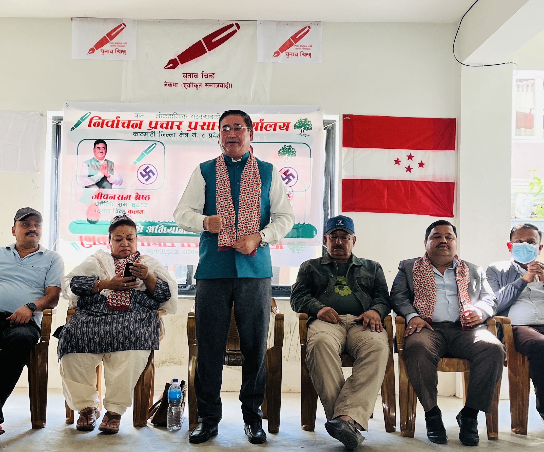 काठमाडौं निर्वाचन क्षेत्र नं ८(ख)को चुनाव प्रचारप्रसार कार्यालय उद्घाटन गर्दै मन्त्री श्रेष्ठले अहिलेको चुनावमा प्रतिगमन र अग्रगमनबीचको प्रतिस्पर्धा हुने बताए ।