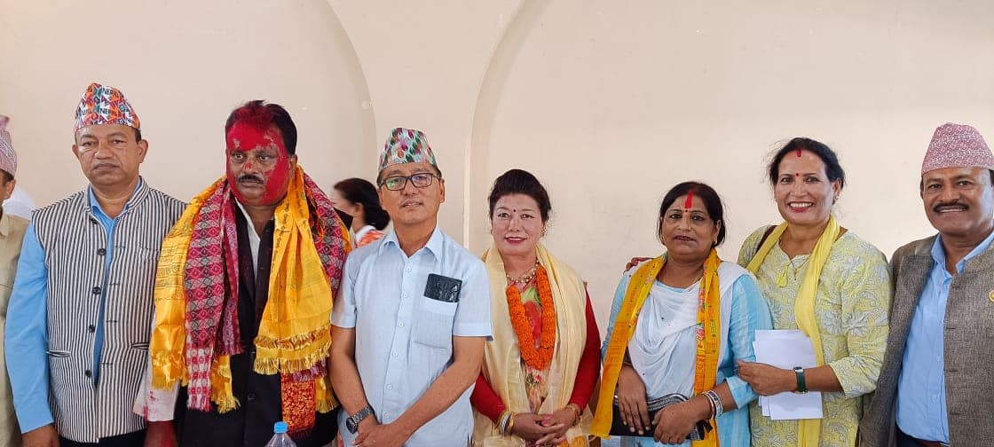 बुधबार राप्रपाका अध्यक्ष एवं झापा क्षेत्र नं ३ का उम्मेदवार राजेन्द्र लिङ्देनले उनलाई टिका लगाएर स्वागत गरेका हुन् ।