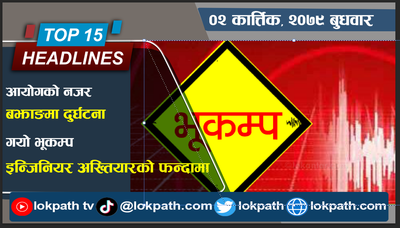 ८. बुधबार दिउँसो सिन्धुपाल्चोक केन्द्रबिन्दु बनाएर गयो ५ दशमलव ९ रेक्टर स्केलको भूकम्प, काठमाडौं आसपासको क्षेत्रमा समेत भूकम्पको धक्का महसुस, ठूलो धनजनको क्षति भने नभएको राष्ट्रिय भूकम्प मापन केन्द्रको भनाइ ।