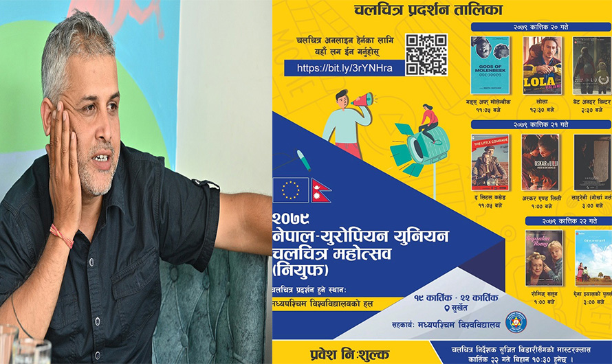 काठमाडौं । ‘ऐना झ्यालको पुतली’ का निर्देशक सुजित बिडारीले सुर्खेतमा फिल्मकर्मीलाई मास्टर क्लास दिने भएका छन् । सुजितले ११औँ संस्करणको नेपाल युरोपियन फिल्म महोत्सवमा अन्तिम दिन फिल्म मेकिङसम्बन्धी क्लास दिने भएका हुन् ।