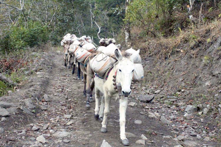 जाजरकोट । जाजरकोटमा ग्रामीण सडक मर्मत नहुँदा यहाँ दैनिक उपभोग्य सामग्री ढुवानी गर्न खच्चडकै सहरा लिनुपरेको छ । हप्ता दिनसम्म आएको अविरल वर्षाका कारण भारी मात्रामा क्षति भएपछि यहाँका ग्रामीण सडक मर्मत हुन सकेका छैनन् ।