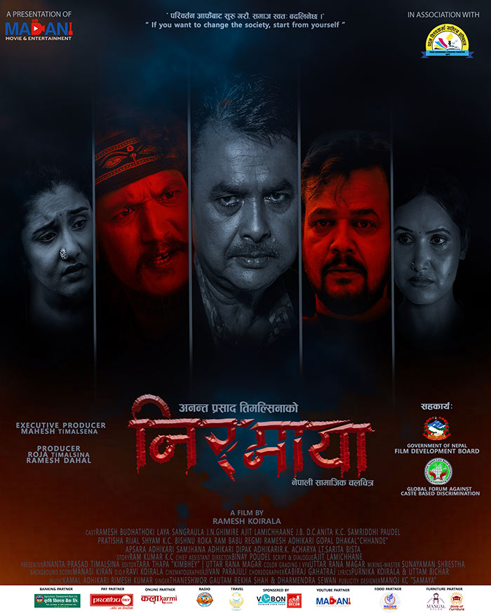 काठमाडौं । मदानी मुभिजले पदम विश्वकर्मा साहित्य प्रतिष्ठानसँगको सहकार्यमा निर्माण गरेको फिल्म ‘निरमाया’ को फस्टलुक र टिजर सार्वजनिक भएको छ । ‘परिवर्तन आफैंबाट सुरु गरौं, समाज स्वत बदलिनेछ’ भन्ने भाव बोकेको फिल्मले छुवाछूतको मुद्दालाई उठान गरेको छ ।
