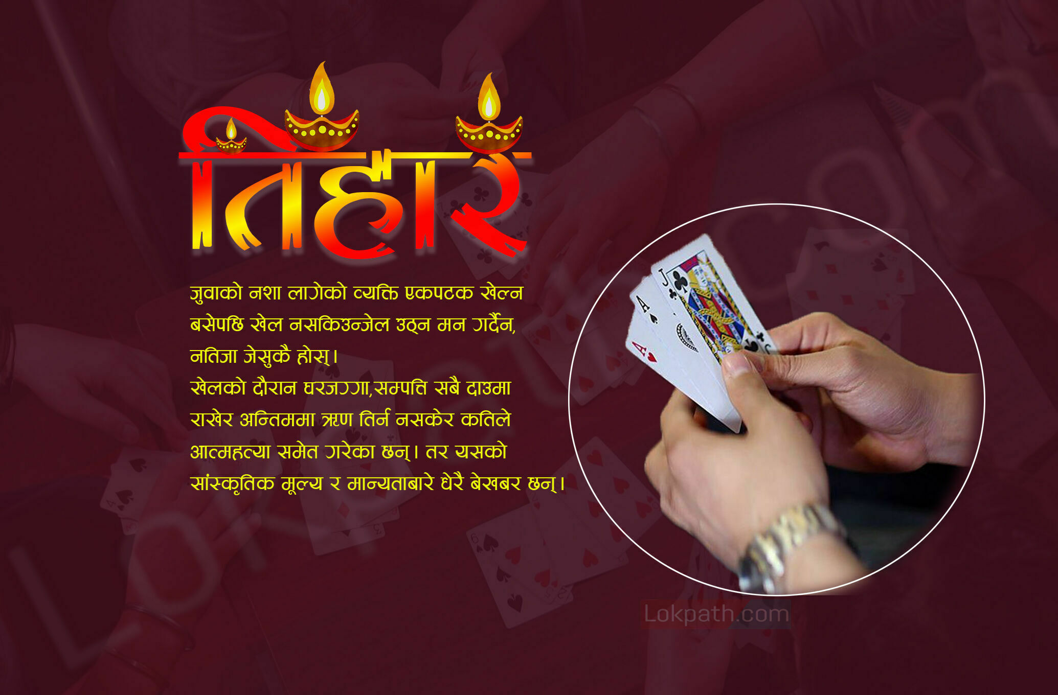 यतिबेला तिहारको रौनकताले छोपिसकेको छ । तिहार आफैंमा बहुआयामिक पक्ष बोकेको पर्व हो । फूलैफूल, झिलिमिली बत्ती, देउसी भैलोसँगै जुवा पनि यसको महत्त्वपूर्ण पक्ष हो । कहिल्यै जूवा नखेल्ने व्यक्ति पनि तिहारको बेला परिवारसँग बसेर जूवा खेल्ने चलन छ ।