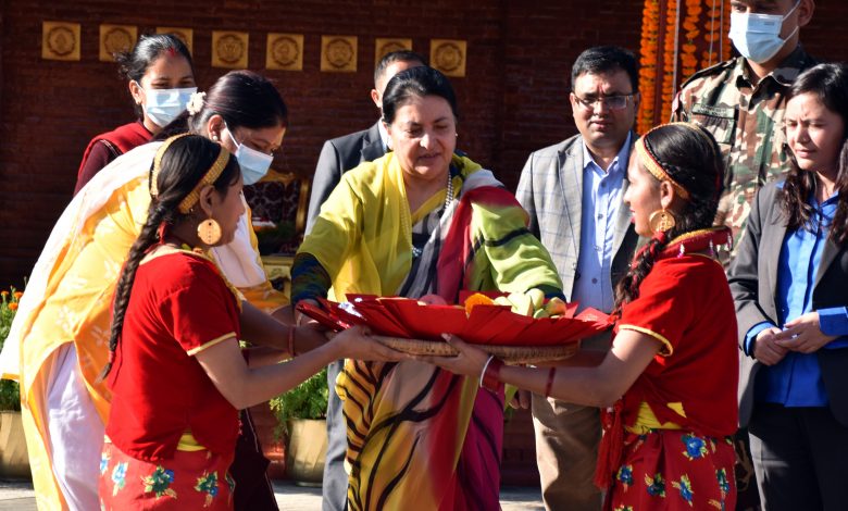 काठमाडौं । राष्ट्रपतिको सरकारी निवास शितल निवासमा देउसीभैलो खेलिएको छ । सोमवार राष्ट्रपतिको निवास रहेको शितल निवासमा सांस्कृतिक संस्थानका कलाकार र बालमन्दिरका बालबालिकाहरुको टोलीले देउसीभैलो कार्यक्रम गरेको हो । सो कार्यक्रममा राष्ट्रपतिलगायत राष्ट्रपतिका परिवारको उपस्थिति रहेको थियो ।