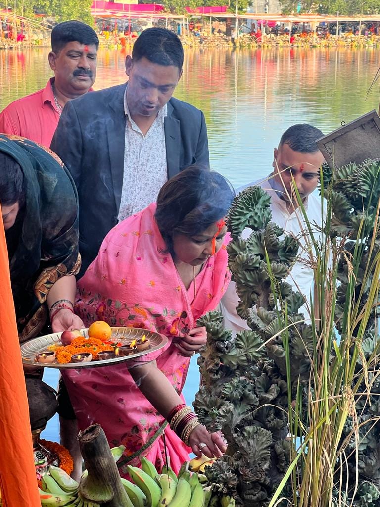 ‘जनकपुरको गंगा सागरमा छठ पुजा गर्न पाउदा हर्षित भएको छु। जय छठी माई’, उनले भनेकी छन् ।