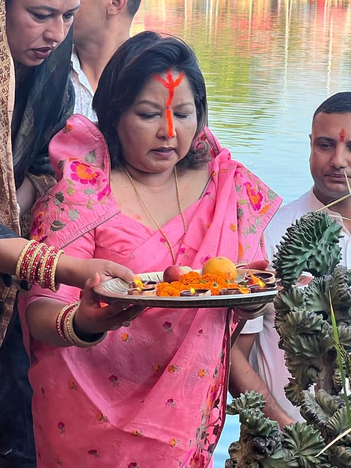 ‘जनकपुरको गंगा सागरमा छठ पुजा गर्न पाउदा हर्षित भएको छु। जय छठी माई’, उनले भनेकी छन् ।