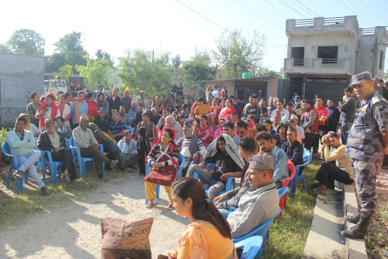 ‘यहाँको बस्ती सुरक्षाका लागि नै करिडोर निर्माण गर्न लागिएको हो । विकासका नाममा जनतालाई आतंकित पार्ने र विस्थापित गर्ने भन्ने हुँदैन’, पौडेलले भने, ‘भ्रममा नपर्नुहोस् यदि यहाँबाट बस्ती हटाउनुपर्ने भएमा यो भन्दा थप व्यवस्थित ठाउँमा तपाईहरूलाई व्यवस्थापन नगरी काम अघि बढ्दैन ।’