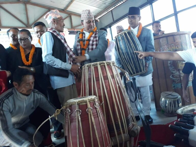 ‘टोखा सांस्कृतिक संरक्षित क्षेत्र भित्रका हाम्रो मुर्त अमुर्त साँस्कृतिक सम्पदाहरू संरक्षण गर्दै आइरहेका ५ वटा दाफा भजन खलः र १ वटा भजन खलः लाई तात्कालीन समयमा नेपाल सरकारका कार्यवाहक प्रधानमन्त्री रहेका यसै क्षेत्रका सांसद ईश्वर पोखरेलले सबै खलः लाई आवश्यक साँस्कृतिक बाजा गाजा हस्तान्तरण गरेको र चतुरमास भजन कृतन अवलोकन गर्न आउनु भएको केही तस्बिरहरु,’ सत्यनारायण डंगोलले सामाजिक सञ्जाल फेसबुकमा लेखेका छन्, ‘हामी आभारी छौं ।’