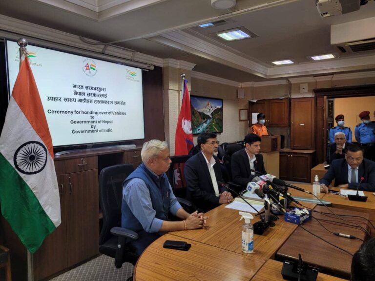 काठमाडौं । आसन्न प्रतिनिधि र प्रदेश सभा निर्वाचन सञ्चालनका लागि भारत सरकारले नेपाललाई उपहारस्वरुप सवारीसाधन प्रदान गरेको छ । नेपालका लागि भारतीय राजदूत नवीन श्रीवास्तवले आज(मंगलबार) आयोजित एक कार्यक्रमकाबिच नेपाल सरकारका अर्थमन्त्री जनार्दन शर्मालाई भारत सरकारको तर्फबाट २०० वटा सवारीसाधन उपहारस्वरुप प्रदान गरेका हुन् ।