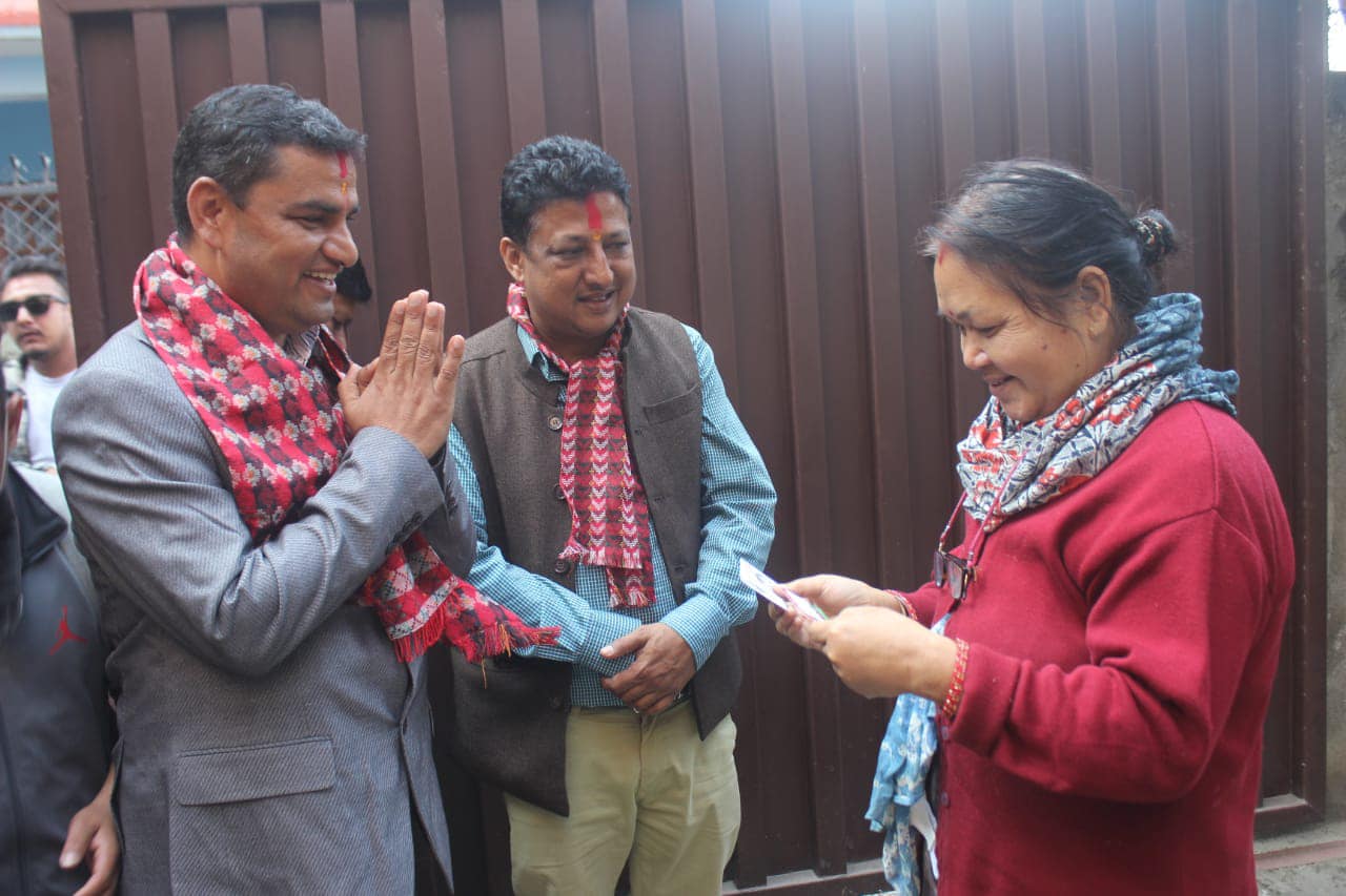 नेता पौडेल मंगलबार काठमाडौं महानगरपालिका वडा नं २ अन्तर्गत ग्रैरीधारा लगायतका क्षेत्रका मतदाताहरुसँग भेटघाट गरेका थिए ।