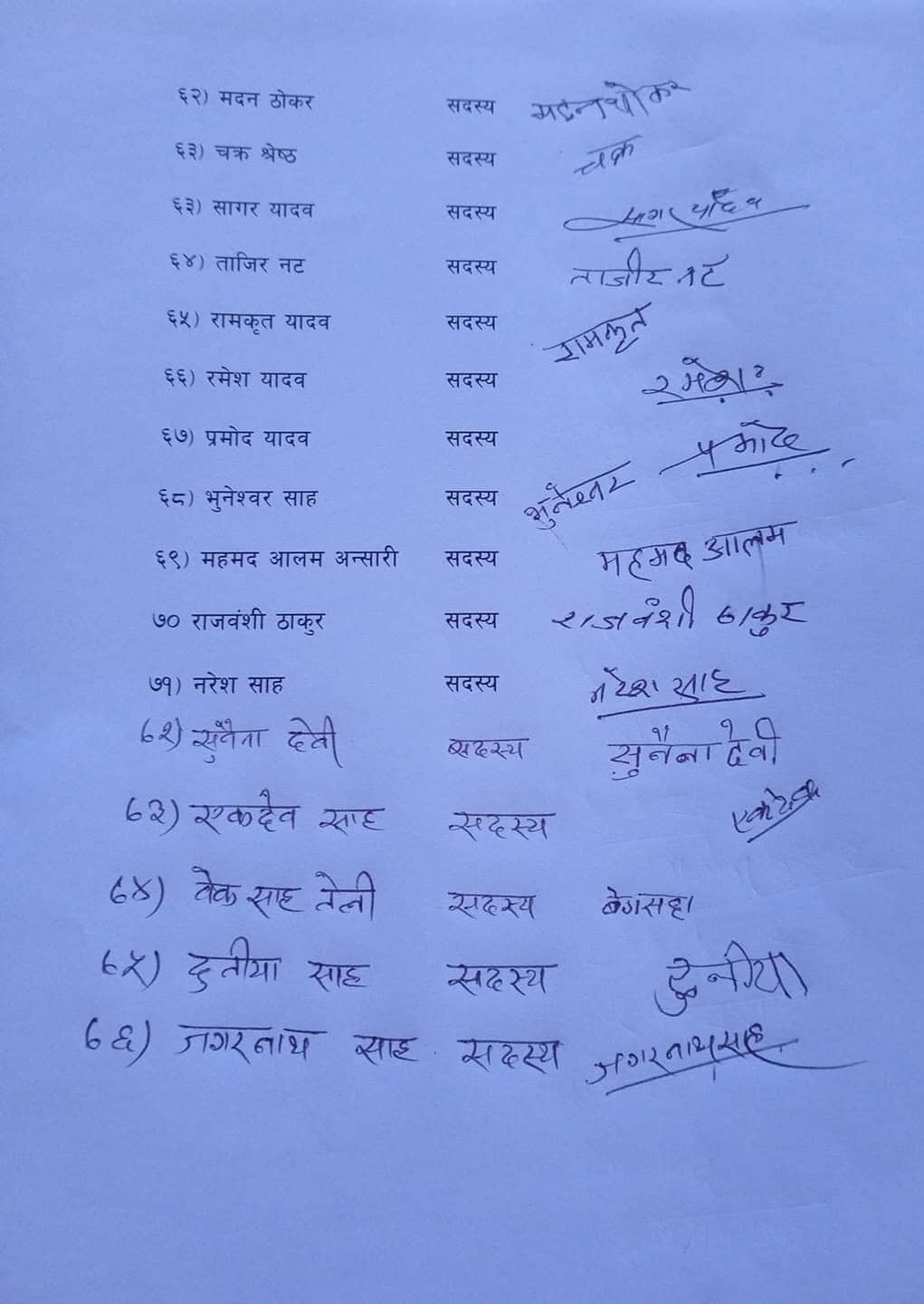 साथै सामूहिक राजीनामा दिनेहरूमा फैसल अन्सारी, मुस्ताफा अन्सारी, पुरेन्द्र मोक्त्तान, साद अन्सारी, साउद अन्सारी,सलाउद्दीन अन्सारी, अब्दुल्लाह अजाद, अब्बाद अन्सारी, अम्मार अन्सारी, किसान संघ जिल्ला कमिटी सदस्य जादोलाल गोठ, अनेरास्ववियु जिल्ला कमिटी सदस्य राकेश वैठा, दलित जिल्ला कमिटी सदस्य राम भरोस राम सहित ७६ जनाले विज्ञप्ति नै जारी गरेर सामूहिक राजीनामा दिएका हुन् ।