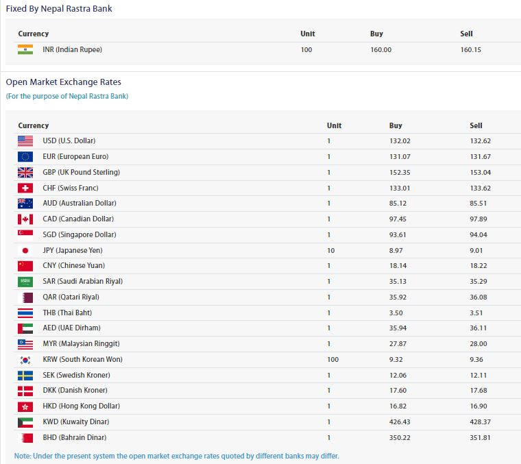 यसैगरी अष्ट्रेलियन डलर एकको खरिदमा ८५ रुपैयाँ ५१ पैसा, जापानी येन १० को खरिदमा ८ रुपैयाँ ९७ पैसा र बिक्रीमा ९ रुपैयाँ १ पैसा रहेको छ । त्यसैगरी साउदी अरेवियन रियाल एकको खरिददर ३५ रुपैयाँ ९२ पैसा र बिक्रीमा ३५ रुपैयाँ २९ पैसा तथा कतारी रियाल एकको खरिददर ३५ रुपैयाँ ९२ पैसा र बिक्रीदर ३६ रुपैयाँ ८ पैसा रहेको छ ।