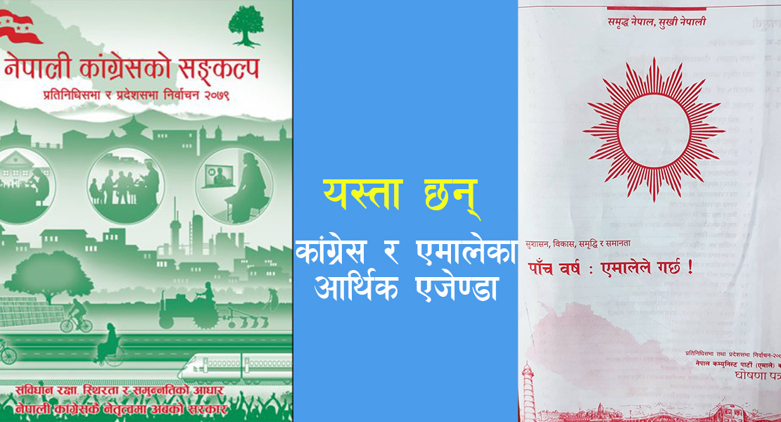 विशेषगरी लामोसमय मुलुकको नेतृत्व गरेको कांग्रेस र एमालेले चुनावी घोषणापत्रमार्फत कस्ता आर्थिक एजेण्डालाई अगाडि सार्यो भन्ने सबैको चासोको विषय बनेको छ ।
