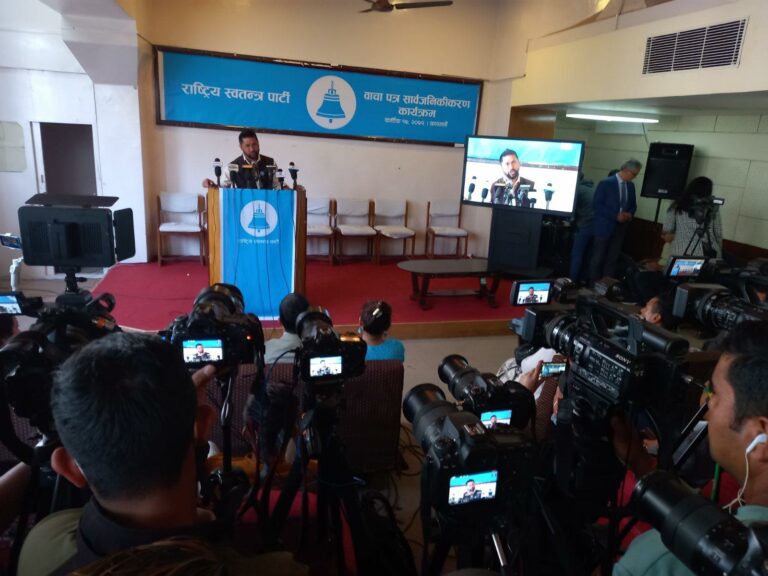 काठमाडौं । रवि लामिछाने नेतृत्वको राष्ट्रिय स्वतन्त्र पार्टीले बिहीबार वाचापत्र (घोषणापत्र) सार्वजनिक गरेको छ । काठमाडौंमा वाचापत्र सार्वजनिक कार्यक्रम चलिरहेको छ ।