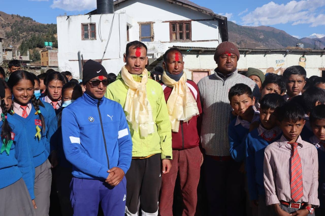 नवौँ राष्ट्रिय खेलकुद प्रतियोगितापछि पोखरा, नेपालगन्ज हुँदै गृह जिल्ला जुम्ला आइपुगेका बुढालाई खादा र अबिरले स्वागत तथा सम्मान गरिएको स्कुल सञ्चालक मनोज बुढाथोकी मगरले बताए ।