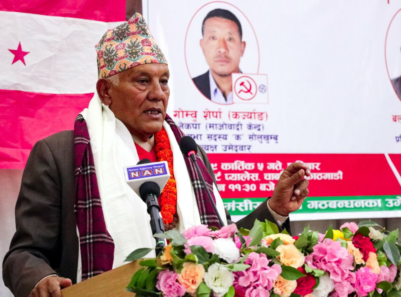 सोलुखुम्बुमा आयोजित संयुक्त चुनावी कार्यक्रमलाई सम्बोधन गर्दै उनले संविधान र गणतन्त्र नै जोखिममा परेपछि कांग्रेस, माओवादी केन्द्र, एकीकृत समाजवादी, राष्ट्रिय जनमोर्चासहितका दलहरुको गठबन्धन बनेको बताए ।
