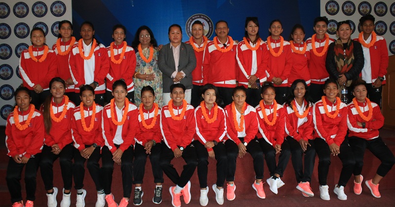 काठमाडौं । भुटानमा भएको साफ यु–१८ च्याम्पियनसिपमा उपविजेता बनेको नेपाली महिला फुटबल टोलीलाई एन्फाले नगद रुपैयाँसहित सम्मान गरेको छ ।