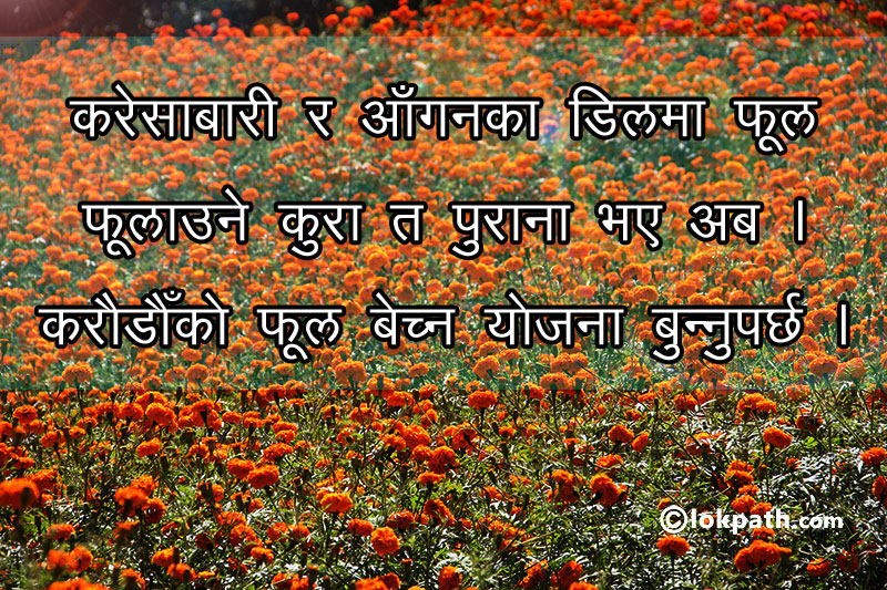पछिल्लो समय फूलको व्यवसाय नेपालमा विस्तार हुँदै गएको छ । सरकारले फूल व्यवसायीलाई प्रोत्साहन र उचित तालिमको व्यवस्था नगर्दा राज्यको ढुकुटीबाट हरेक बर्ष करोडौँ रकम बहिर जान्छ । हरेक वर्ष तिहार आउँछ र यस चाडमा फूलको खपत अत्याधिक हुन्छ भन्ने कुरा नजरअन्दाज नगरी योजना बनाएर काम गर्ने हो भने पनि कम्तिमा फूलकै लागि अरु देशको भर पर्नुपर्ने थिएन ।