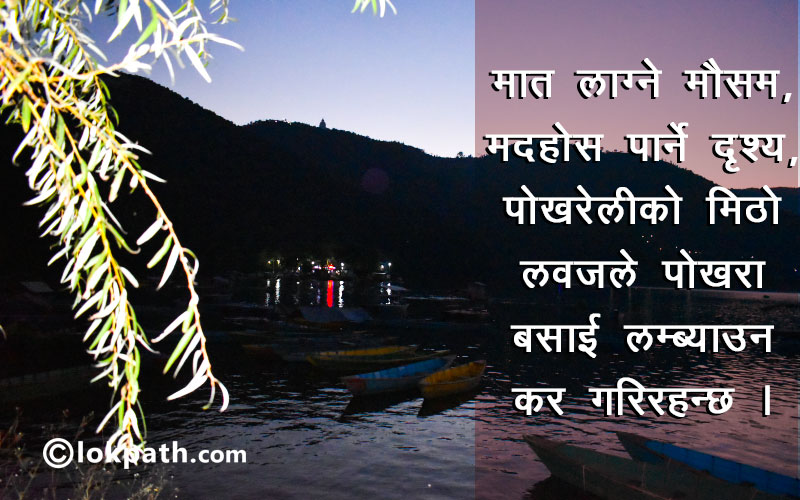 यो किवदंती होईन, पोखराको सुन्दरताले मोहित हुनेहरुको सिफारिस हो । फेवाताल एरिया उर्फ  'लेकसाईड'  ।