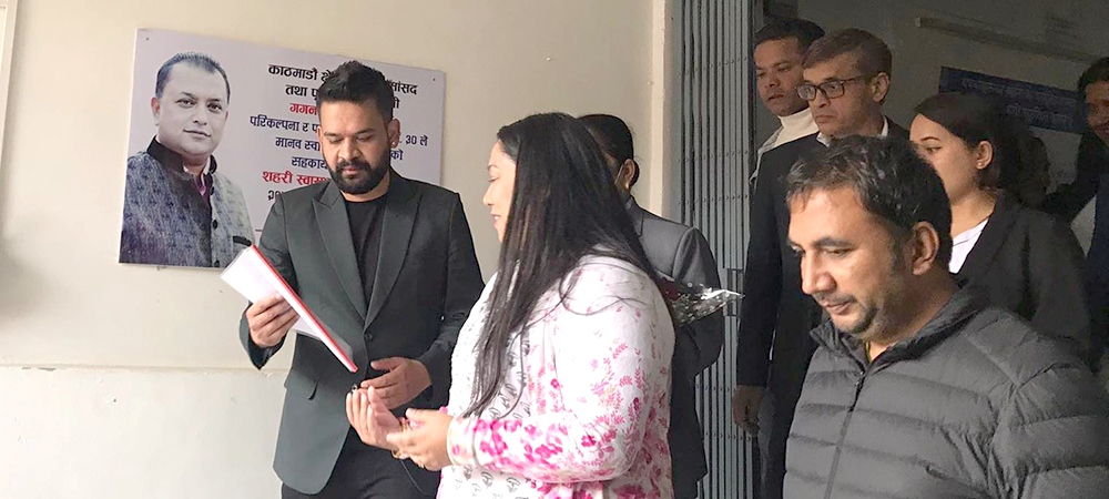 काठमाडौं । शहरी क्षेत्रका जनतालाई सर्वसुलभ स्वास्थ्य सेवा प्रदान गर्न पूर्व स्वाथ्यमन्त्री गगन कुमार थापाले काठमाडौं क्षेत्र नम्बर ४ को ज्ञानेश्वरमा सञ्चालन गरेको शहरी स्वास्थ्य प्रबर्धन केन्द्रको काठमाडौं महानगरपालिकाका मेयर बालेन्द्र शाह (बोलन)ले अवलोकन गरेका छन् । बुधवार स्वास्थ्य केन्द्रमा पुगेका बालेनले एक घण्टा स्वास्थ्य केन्द्रमा विताएका थिए ।