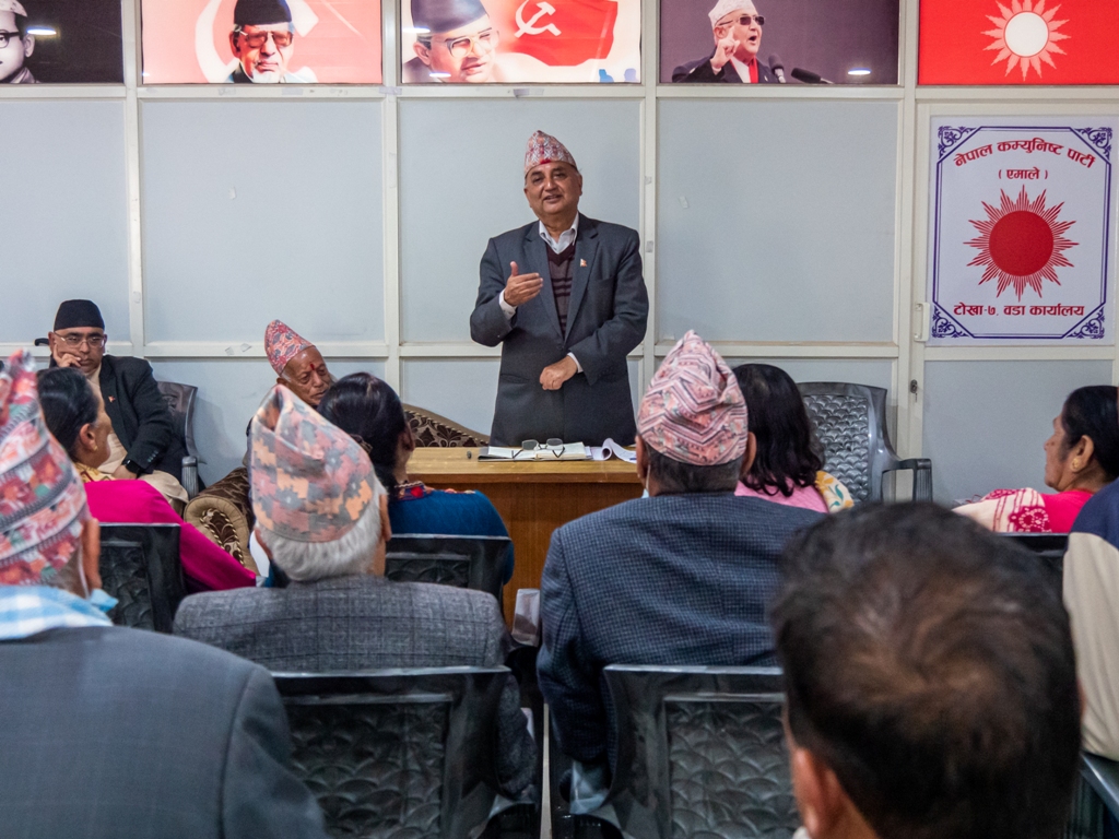 आगामी मंसिर ४ को निर्वाचनका लागि एमालेले जारी गरेको घोषणापत्रमा पनि ज्येष्ठ नागरिकको हक हितका लागि धेरै एजेण्डा समेटिएकाले ज्येष्ठ नागरिकको हितका लागि पनि एमालेले आगामी निर्वाचन जित्नुपर्ने वरिष्ठ उपाध्यक्ष पोखरेलले बताए । ज्येष्ठ नागरिकहरूले पोखरेलसँग आफूहरूलाई एउटा भवन आवश्यक रहेको तथा भवनमा भजनकीर्तन र जमघट गर्ने व्यवस्था मिलाइदिन आग्रह गरेका थिए । नेकपा एमालेको सरकार बनेपछि ज्येष्ठ नागरिकका समस्या समाधान गर्दै मागबमोजिम भवन निर्माण गरिने प्रतिबद्धता पोखरेलले बताए ।
