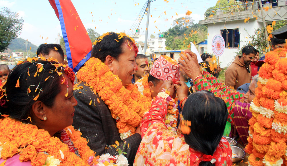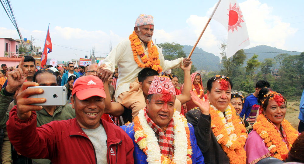 घरदैलो कार्यक्रममा स्वतस्फुर्त रुपमा वडा नम्बर ७ का हजारौं जनता सडकमा ओर्लिएका छन् । यो सँगै आगामी निर्वाचनमा गठबन्धनलाई ठूलो चुनौति देखिएको छ । नेकपा एमालेको पोलिटव्युरो सदस्य, पूर्वमन्त्री तथा क्षेत्र नम्बर २ का उम्मेदवार महेश बस्नेतको गृहवडा गुण्डूमा आज भव्य रुपमा घरदैलो कार्यक्रम आयोजना गरिएको छ । काठमाडौं वल्र्ड स्कुलबाट शुरु भएको घरदैलो कार्यक्रम नयाँ वसपार्कमा पुगेर सम्पन्न भएको थियो । भक्तपुरको विकास र समृद्धिमा एमालेको विकल्प नभएको उल्लेख गर्दै सूर्यमा भन्दा अन्यमा छाप लगाउन हात नै नलाग्ने जनताले बताए ।