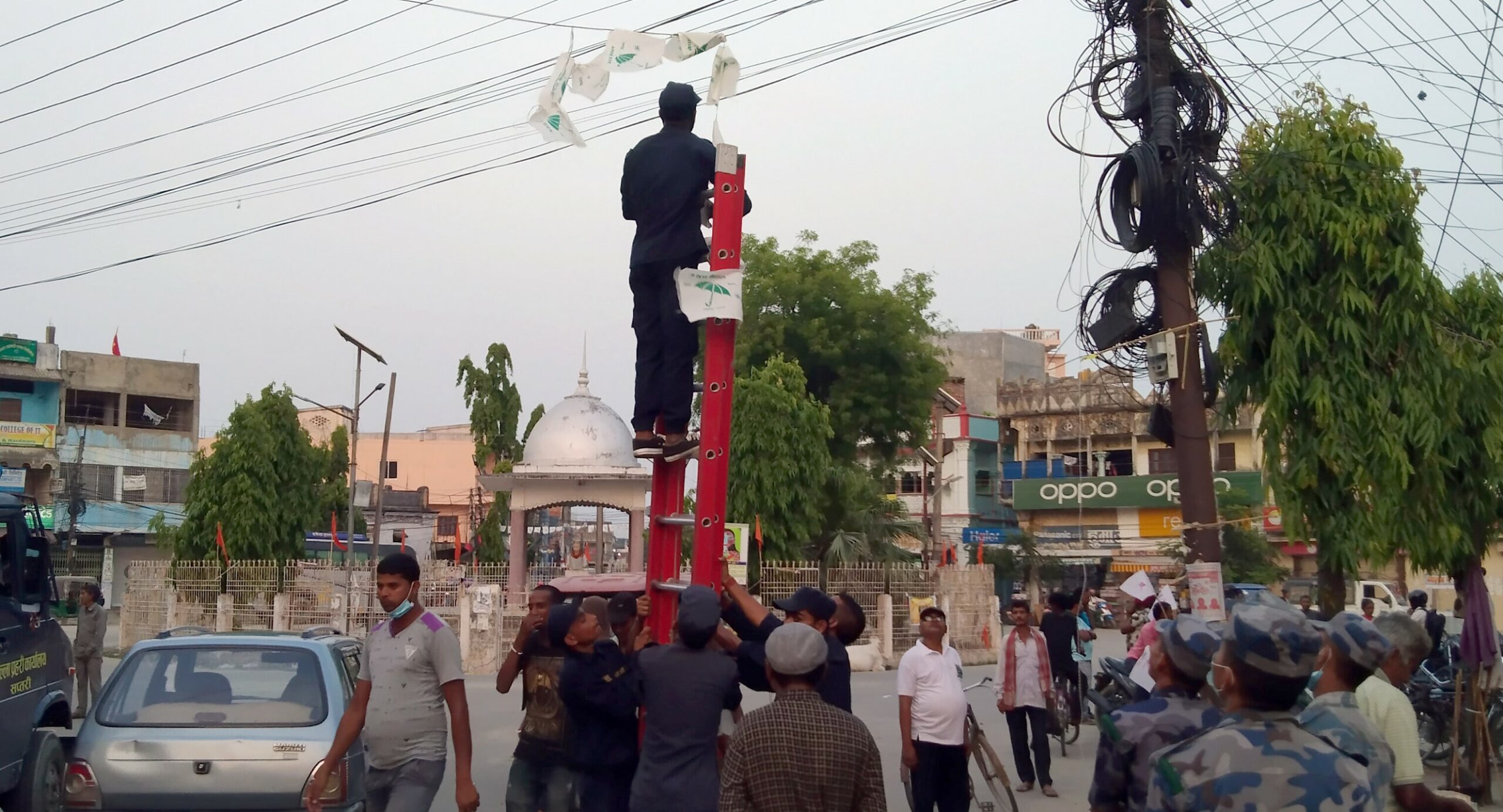 सप्तरी । सप्तरीको राजबिराज नगरभित्र टाँगेका निर्वाचन प्रचार सामग्री आजदेखि हटाउन थालिएको छ ।