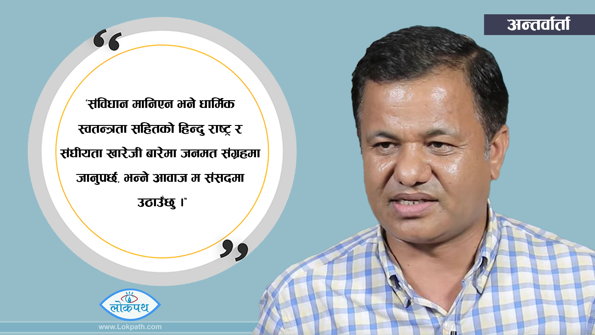 संविधान नमान्ने नै हो भने नेपाली जनताले चाहेको धार्मिक स्वतन्त्रतासहितको हिन्दू राष्ट्रको विषय जनमतसंग्रहमा किन नलैजाने रु आम नेपाली जनताले संघीयता चाहेको छैन । यो नेपाली जनताको मुद्दा पनि होइन भने संघीयता र धर्मको बारेमा हिन्दु राज्य बनाउने अथवा धार्मिक स्वतन्त्रतासहितको हिन्दु राष्ट्र बनाउने र संघीयता खारेज गर्ने भन्ने बारेमा जनमत संग्रहमा जानुपर्छ भन्ने आवाजहरु म संसदमा उठाउँछु ।