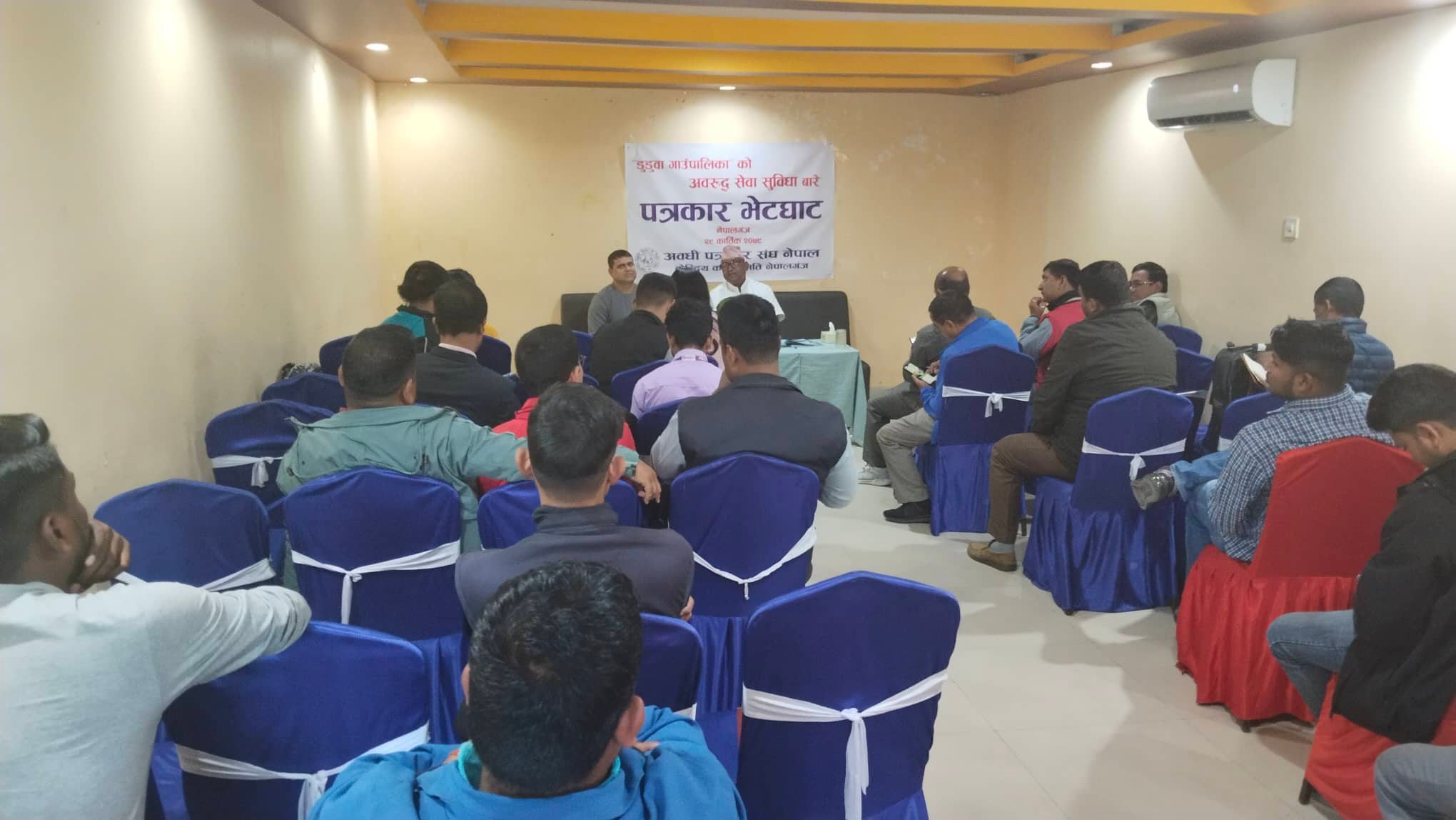 अवधी पत्रकार संघ नेपालले आज नोपलगञ्जमा गरेको डुडुवा गाउँपालिकाको अवरुद्ध सेवासुविधाबारे पत्रकार भेटघाट कार्यक्रममा बोल्दै अध्यक्ष चौधरीले आफू अनुकुल र कानुन विपरितको निर्णय गर्न लगाउने कार्य गलत भएकाले र जनताको विपक्षमा गएर कहिले पनि गलत निर्णय नलिने स्पष्ट पारे ।