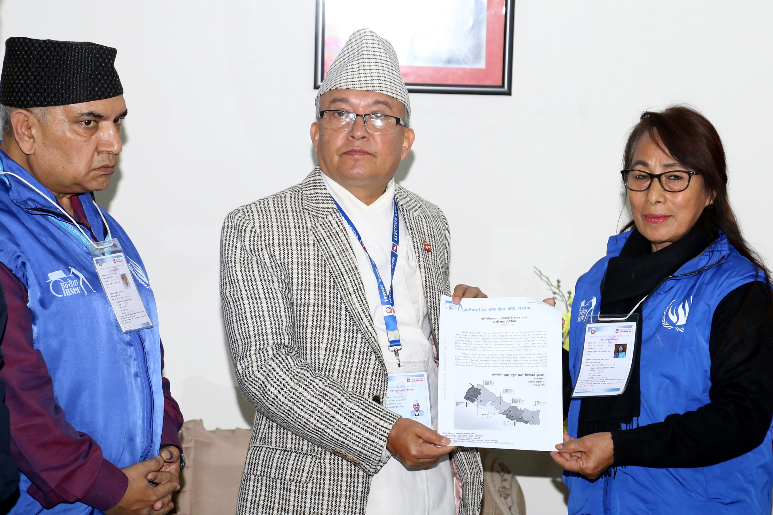 प्रमुख निर्वाचन आयुक्त थपलियाले निर्वाचनमा देखिएका सुधार विगतमा पर्यवेक्षक संस्थाले गरेका सुझावकै आधारमा भएको जनाउँदै आगामी दिनमा गर्नुपर्ने कानूनी सुधार र मतदाता शिक्षाको नियमित सञ्चालनबारे आयोगले फड्को मार्ने गरी काम गर्ने सोच बनाएको बताए । इन्सेकका अध्यक्ष डा.इन्दिरा श्रेष्ठले सो प्रतिवेदन बुझाएकी थिइन् ।