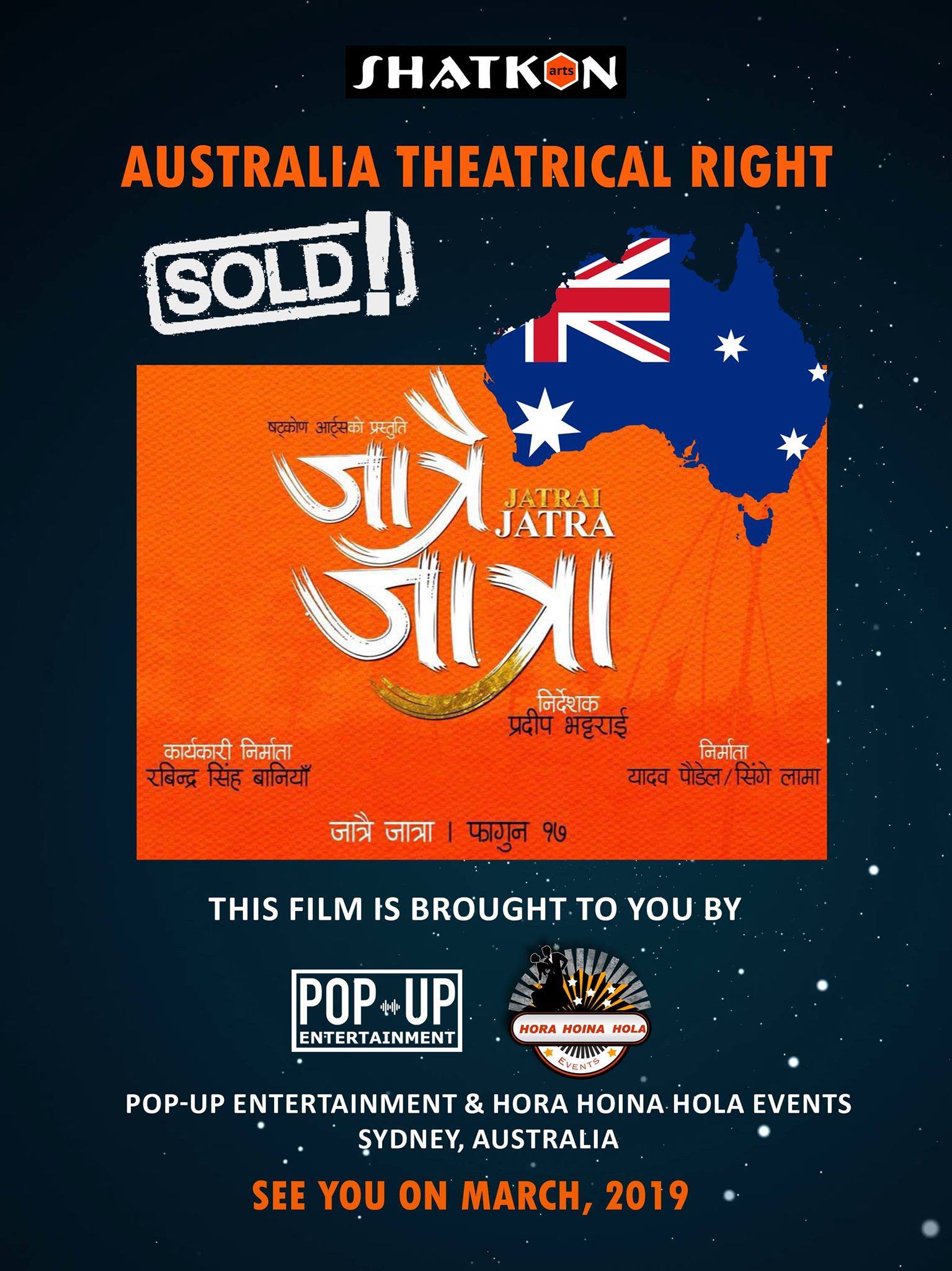 काठमाडौं । चलचित्र ‘जात्रै जात्रा’ को टिजर रिलिज भएसँगै यसको अस्ट्रेलियाको राइटस् विक्री भएको छ । निर्माण टिमको दावीअनुसार चलचित्र पूर्ण नहुँदै अस्ट्रेलिया राइटस् ३५ लाखमा सम्झौता गरिएको हो । हो र होइन होला इभेन्ट र पप अप इन्टरटेन्मेन्टले फिल्मको टिजर उत्साहजनक भएको बताउँदै ‘जात्रै जात्रा’ टिमसँग सम्झौता गरेका हुन् ।
