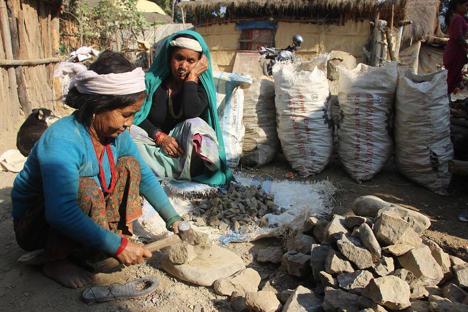 सुमित्राको ५ जनाको परिवारले ज्याला मजदुरी संगै विहान साँझ गिट्टी कुट्दै जिविकोपार्जन गर्दै आईरहेको छ ।