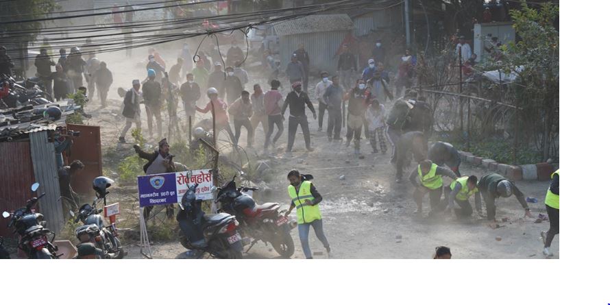 काठमाडौं । काठमाडौं महानगरले थापाथलीस्थित बाग्मती किनारको सुकुम्वासी बस्ती हटाउन खोजेको भन्दै सो क्षेत्रमा बसोबार गर्ने नागरिकले विरोध गरेका छन् । बस्ती हटाउनका लागि आज दिउँसो काठमाडौं महानगरको नगर प्रहरी र डोजर पुगेको थियो । महानगर प्रहरी र सुकुम्वासीबीच मुठभेड हुँदा साढे चार घण्टासम्म थापाथली परिसर असान्त बन्न पुगेको थियो ।
