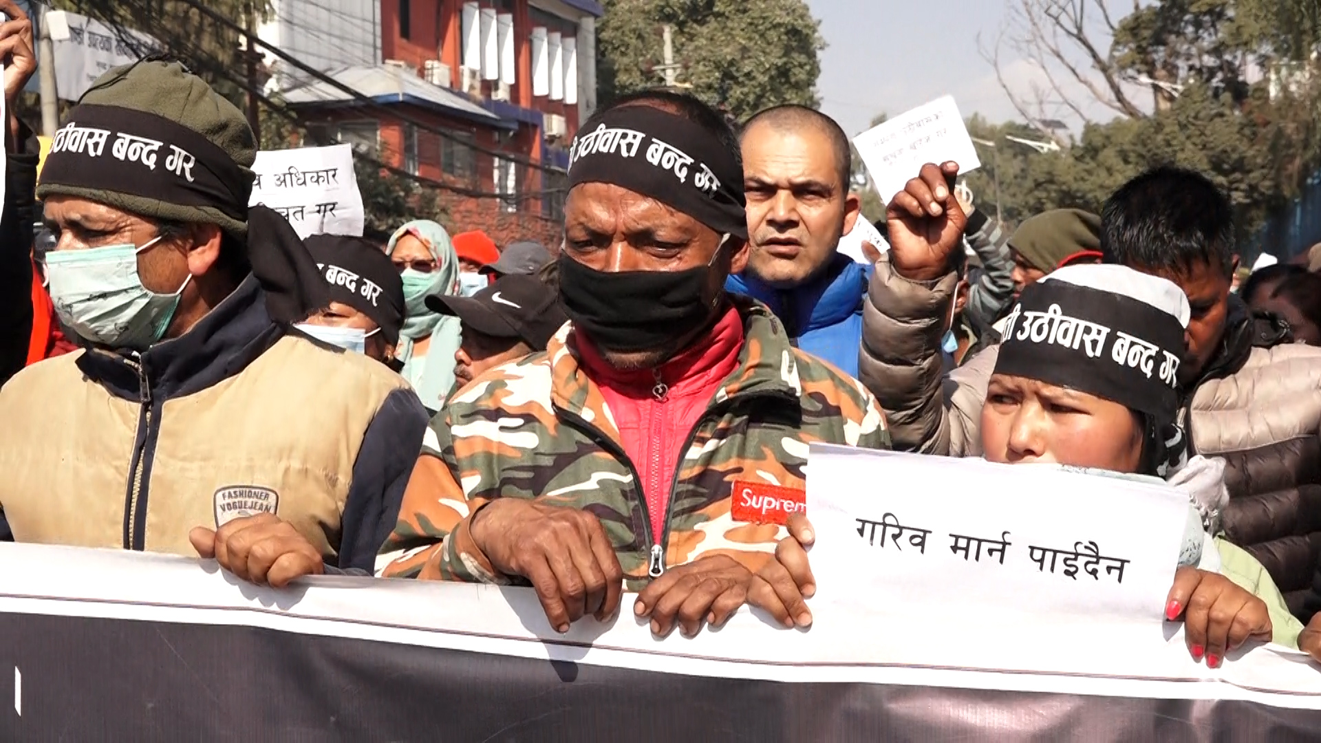 काठमाडौं महानगरपालिका अगाडी सुकुम्बासीहरुको विरोध प्रदर्शन