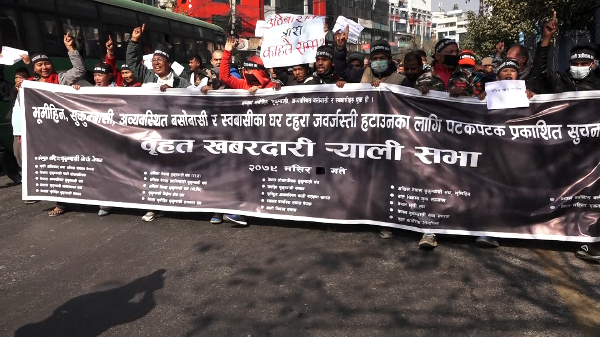 धेरै संख्यामा जम्मा भएका सुकुम्बासीहरुले आफूहरुलाई सुकुम्बासी बस्तीबाट महानगरपालिकाले बलपूर्वक हटाउन लागेकोमा बिरोध प्रदर्शन गरेका हुन् ।