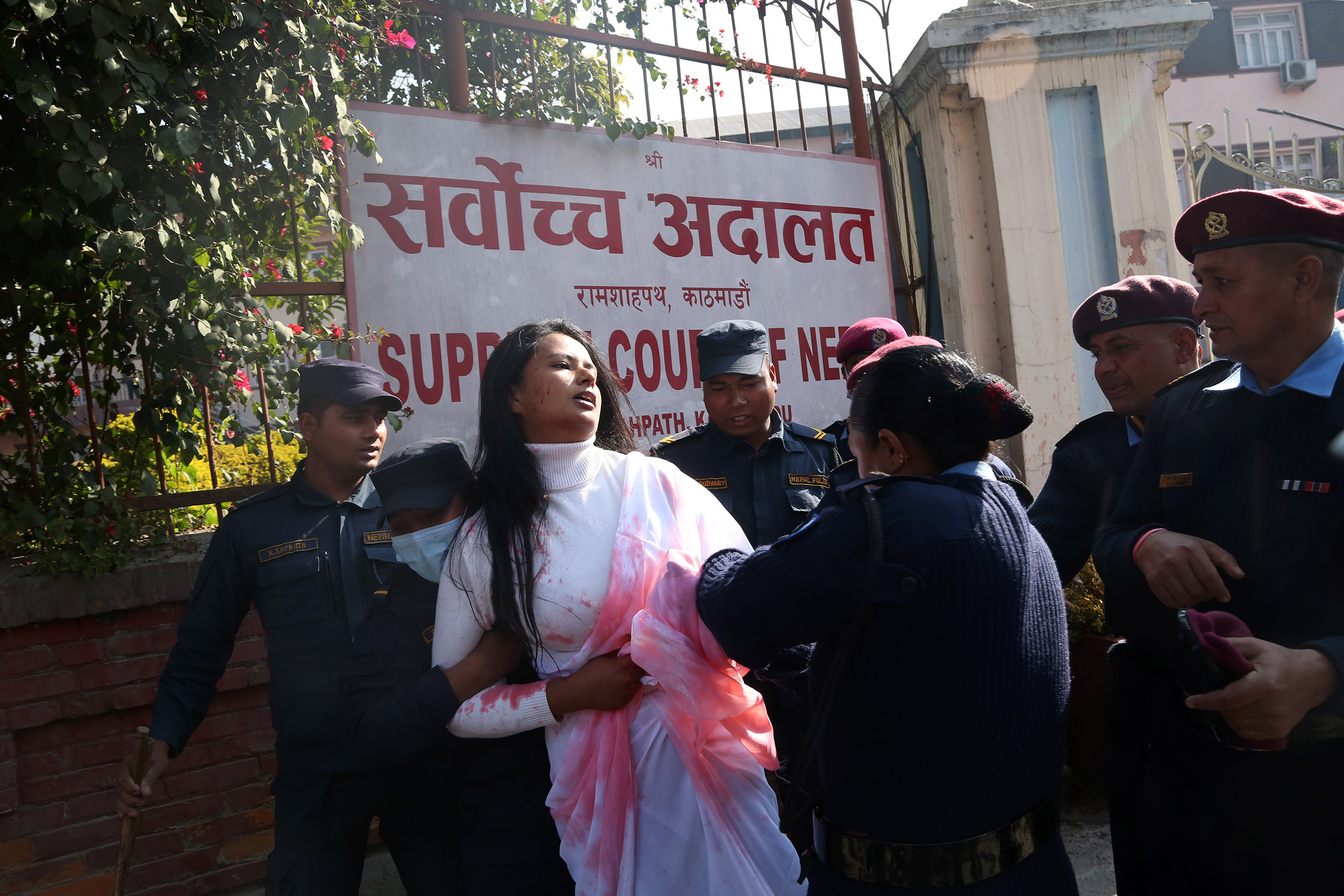 मंगलबार बिहान सर्वोच्च अदालतको गेटमा न्याय माग्दै रातो रंग छ्याप्ने दुई जना युवतीलाई प्रहरीले पक्राउ गरेको हो।