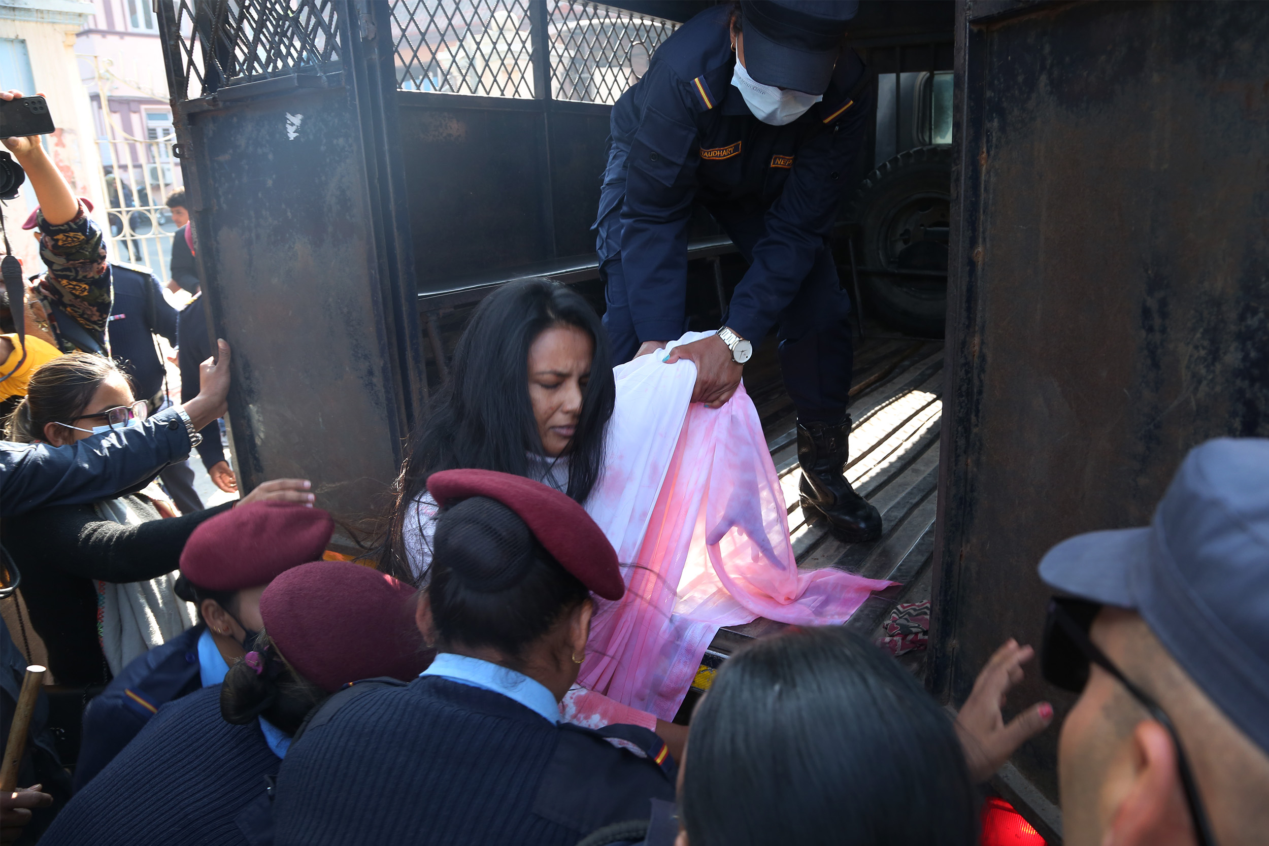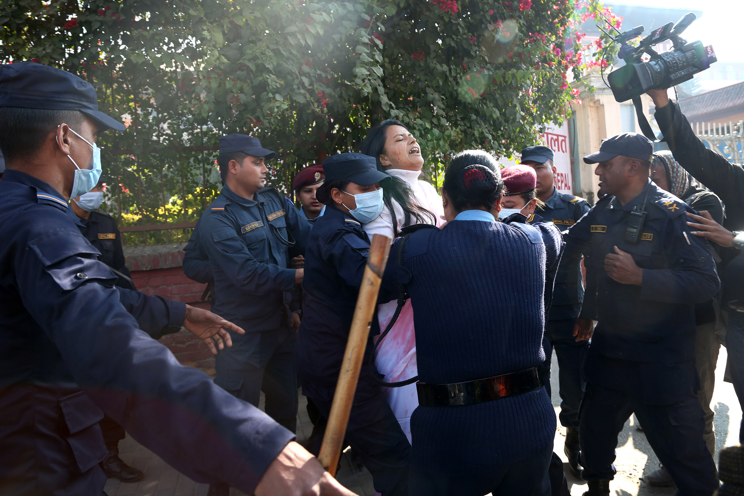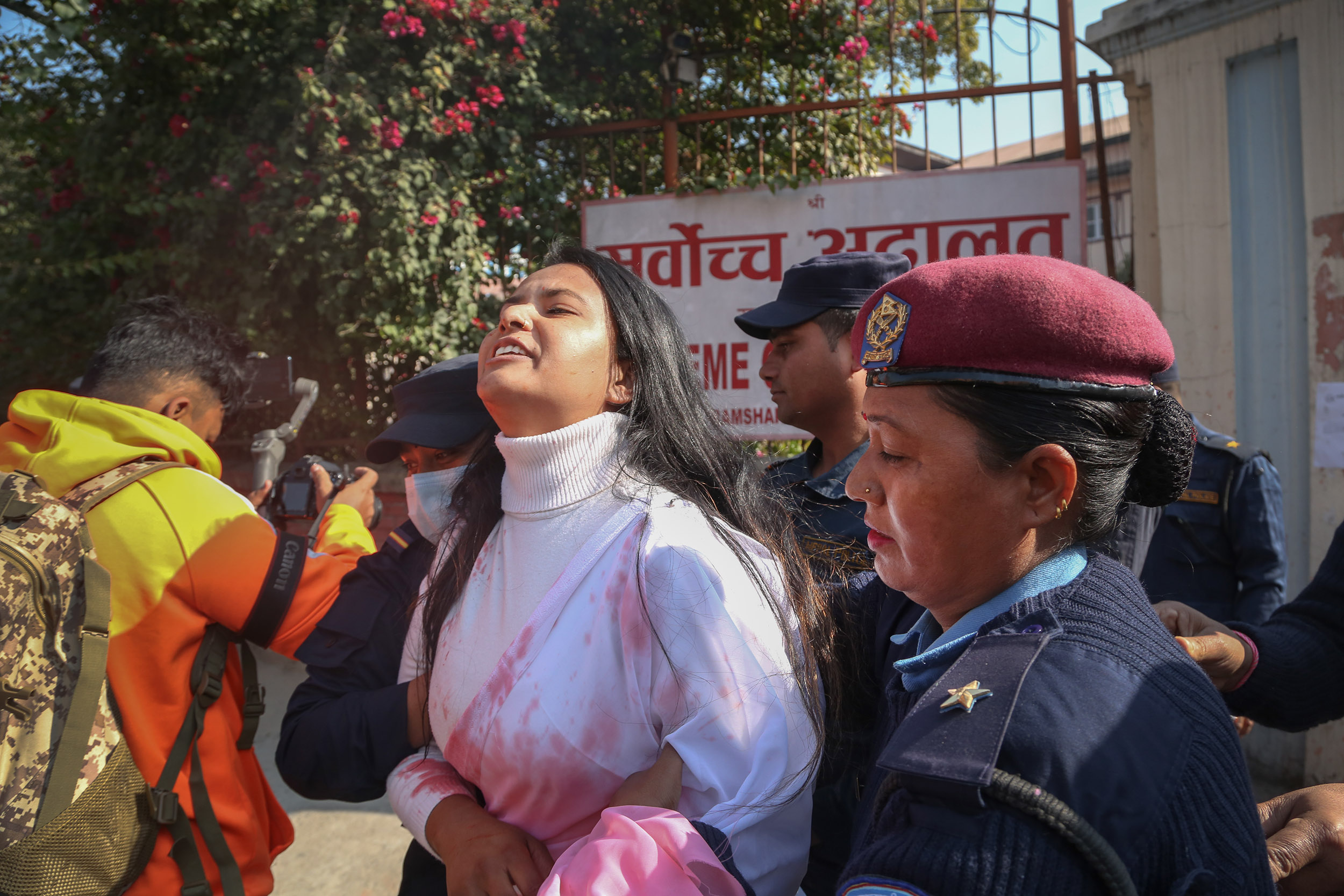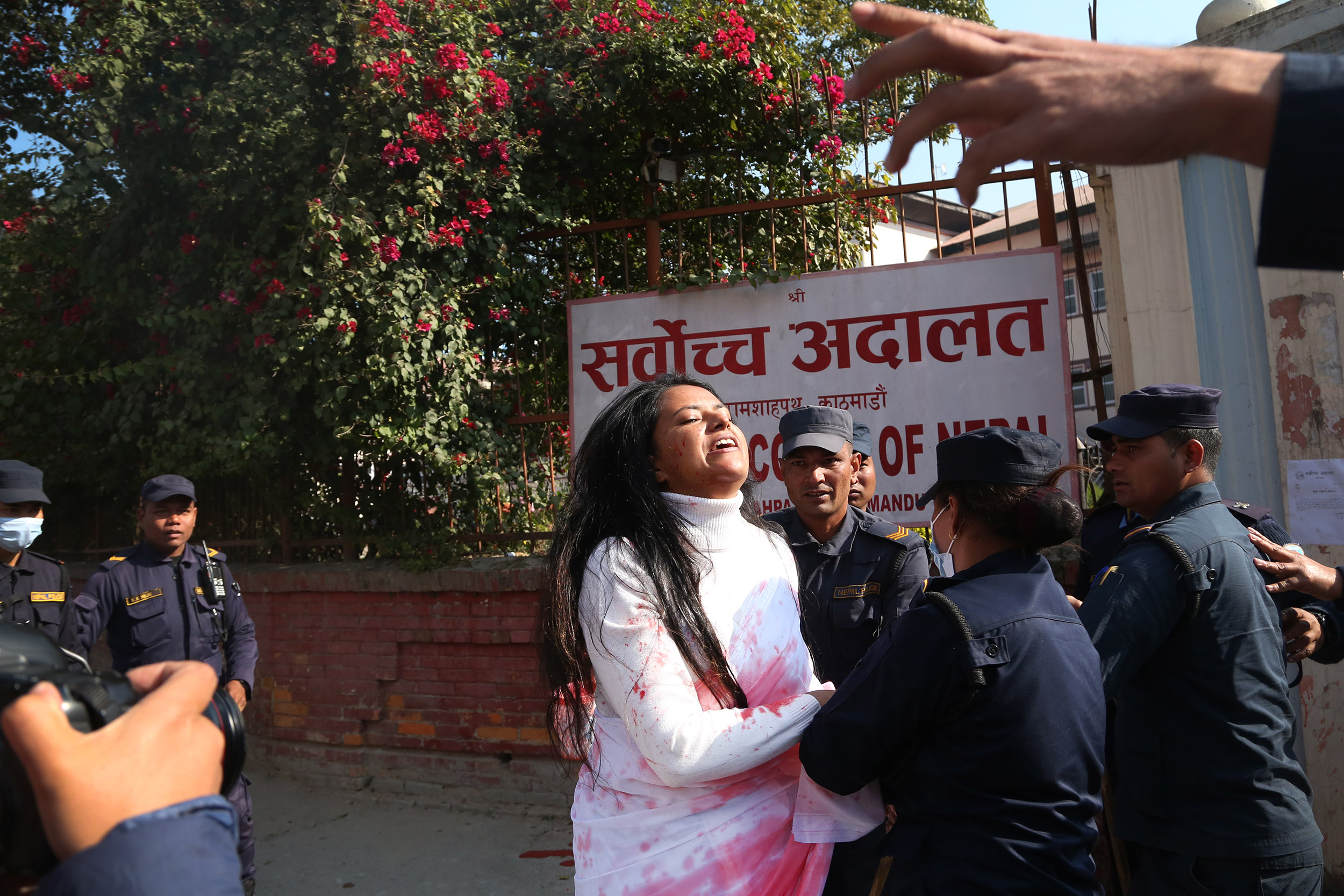 मंगलबार बिहान सर्वोच्च अदालतको गेटमा न्याय माग्दै रातो रंग छ्याप्ने दुई जना युवतीलाई प्रहरीले पक्राउ गरेको हो।