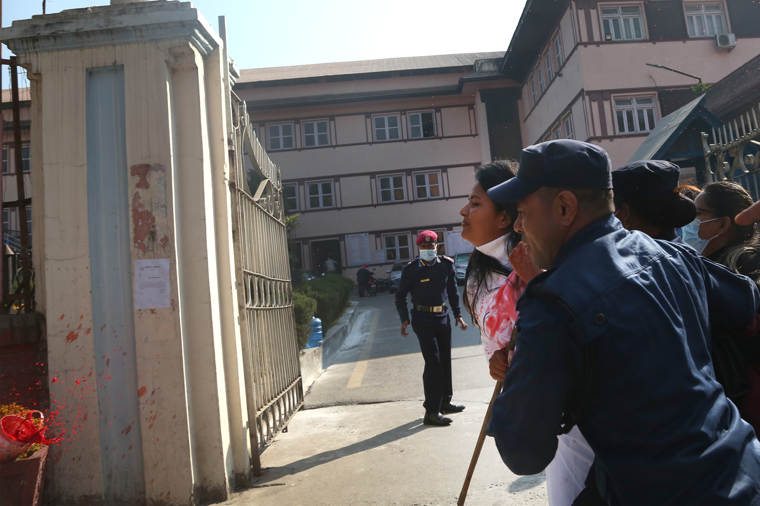 सर्वोच्चको गेटमा रातो रंग छ्याप्ने युवतीसहित दुई जना पक्राउ (तस्वीरसहित)