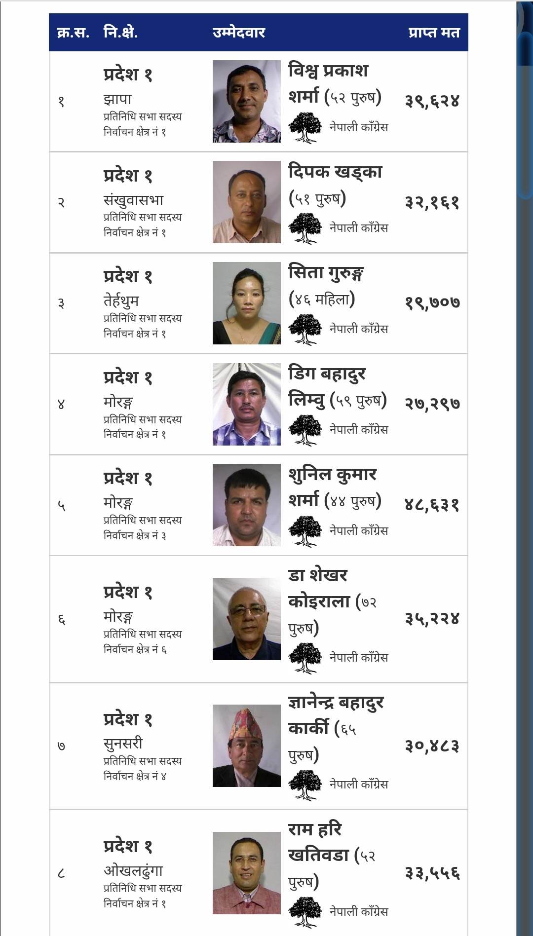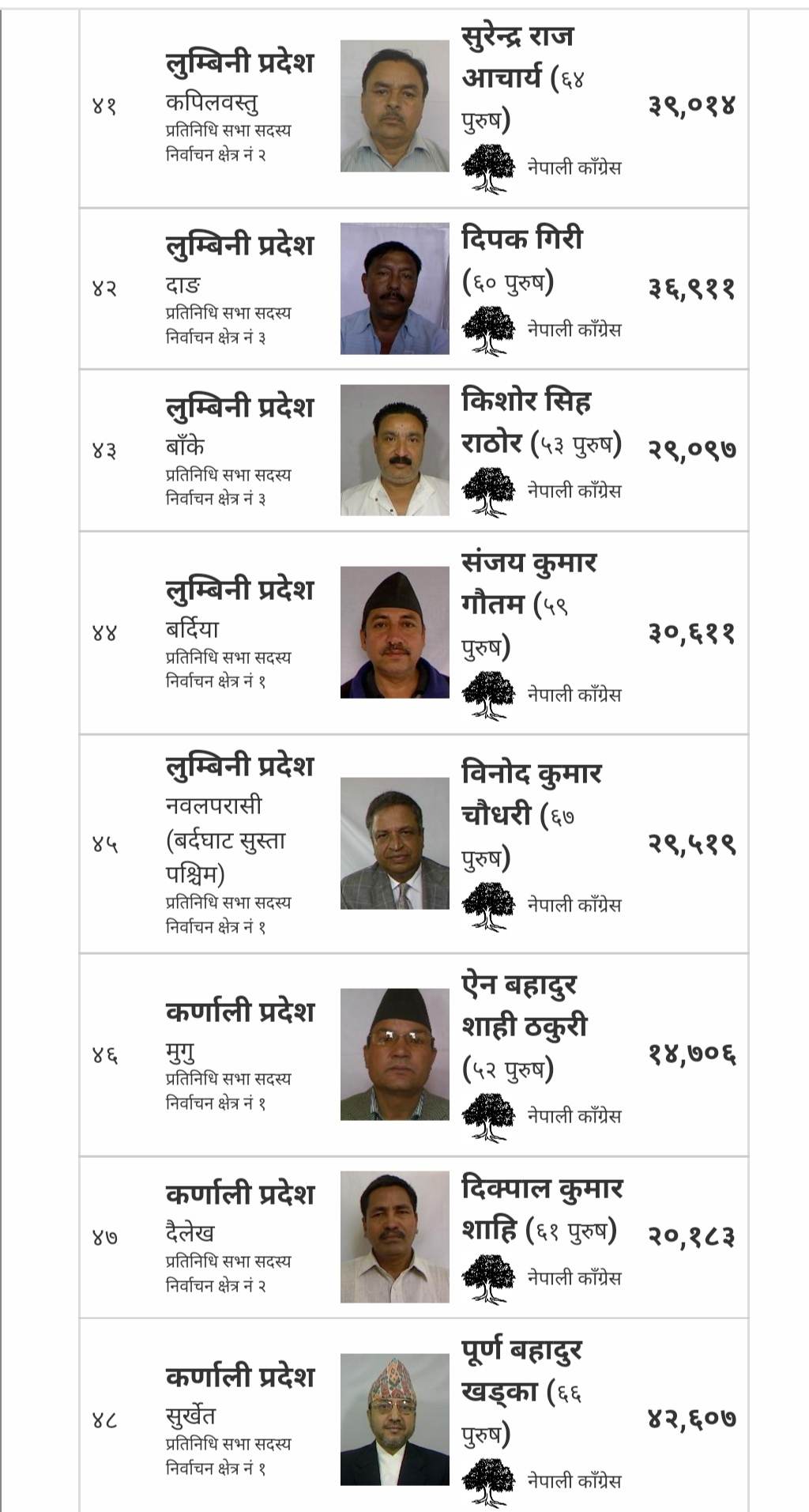 जसअनुसार ५७ निर्वाचन क्षेत्रमा जितेसँगै नेपाली कांग्रेस पहिलो दल बनेको छ । त्यसैगरी ४४ स्थानमा जित हासिल गरेसँगै नेकपा एमाले दोस्रो दल बनेको छ ।