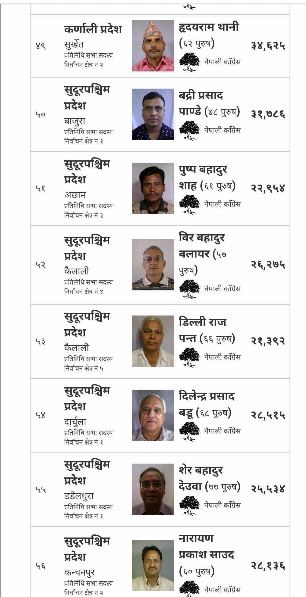 काठमाडौं । आम निर्वाचनको प्रतिनिधि सभाको प्रत्यक्षतर्फको सबै निर्वाचन क्षेत्रको अन्तिम परिणाम आएको छ ।
