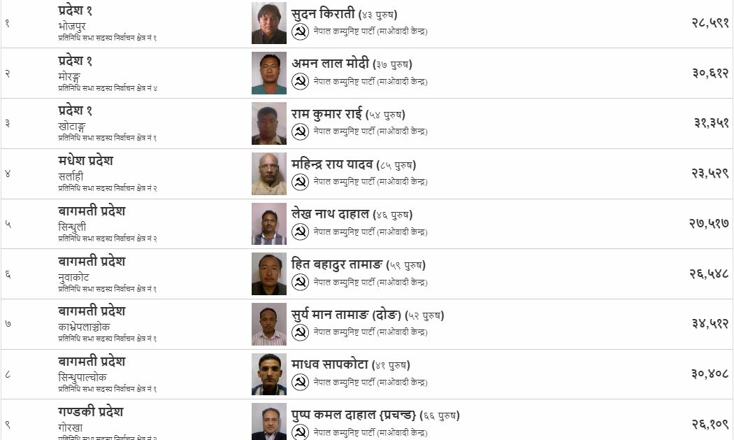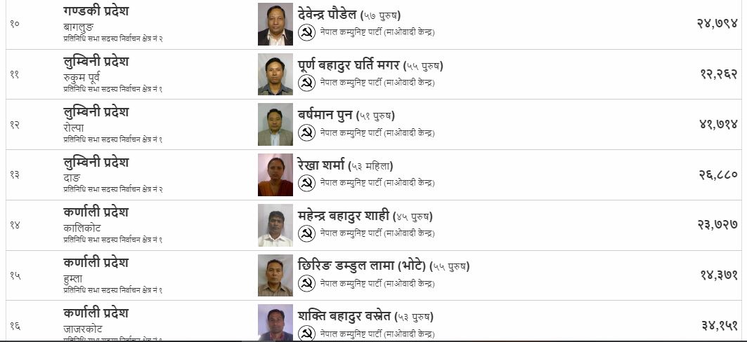 नेकपा माओवादी केन्द्रले १८ स्थानमा जितेको छ ।
