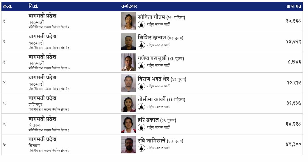 त्यस्तै देशभरबाट स्वतन्त्रले ५ निर्वाचन क्षेत्रमा जित हात पारेको आयोगले जनाएको छ ।
