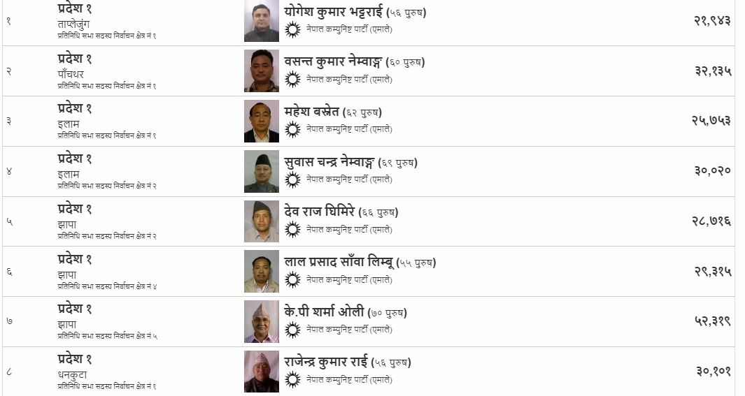 केही स्थान बाहेक अन्य स्थानको समानुपातिकको अन्तिम परिणाम आउने क्रम जारी छ ।
