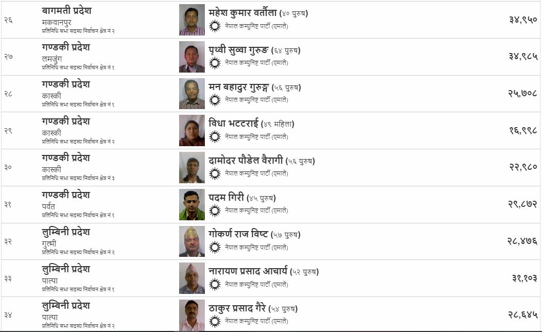 केही स्थान बाहेक अन्य स्थानको समानुपातिकको अन्तिम परिणाम आउने क्रम जारी छ ।