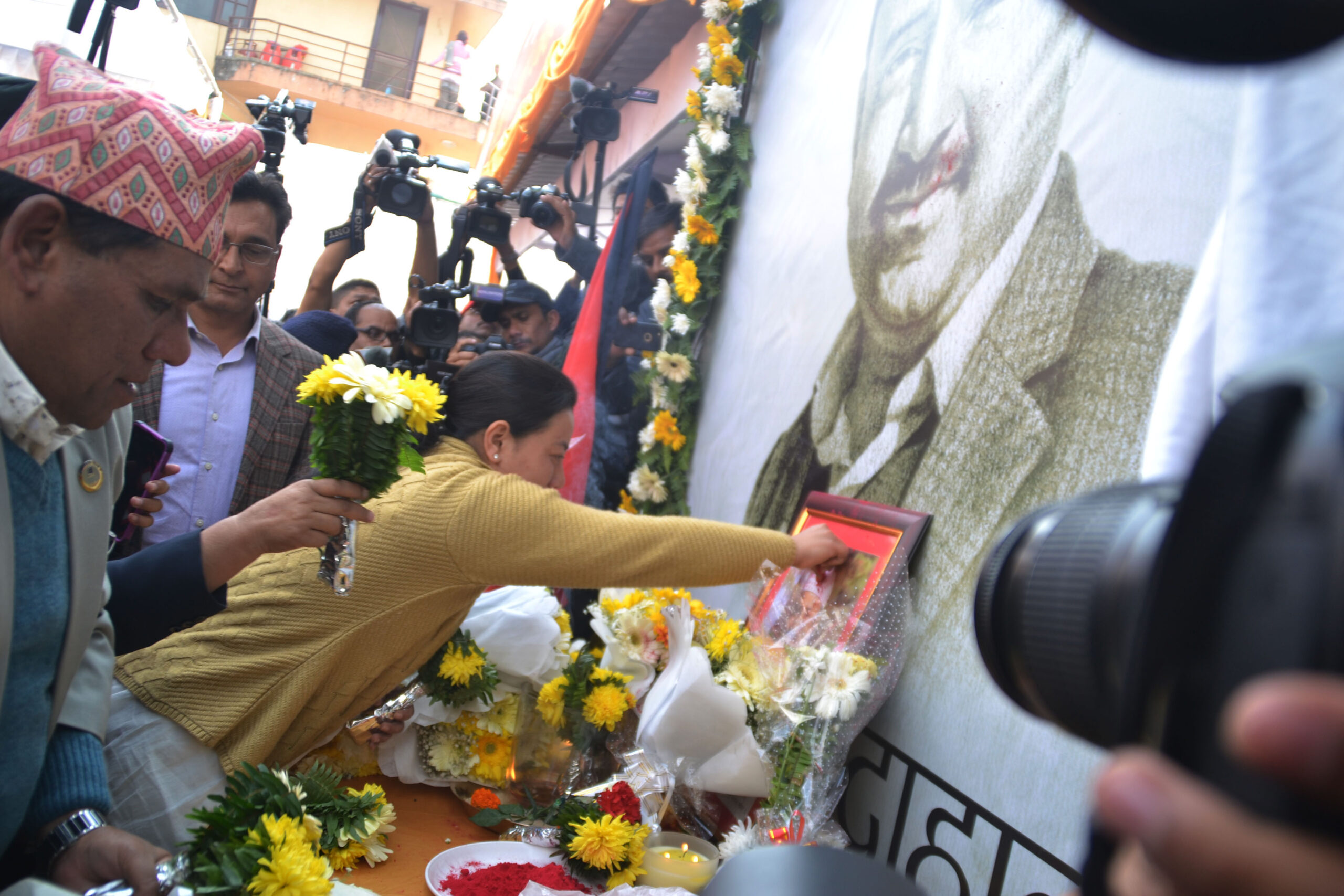 सोमवार खुमलटारमा आयोजित प्रकाश दाहालको पहिलो स्मृति दिवसमा पूर्व प्रधानमन्त्री समेत रहेका अध्यक्ष प्रचण्ड, सीता दाहाल, प्रकाशकी जीवन संगीनी विना मगर भक्कानिएका थिए ।