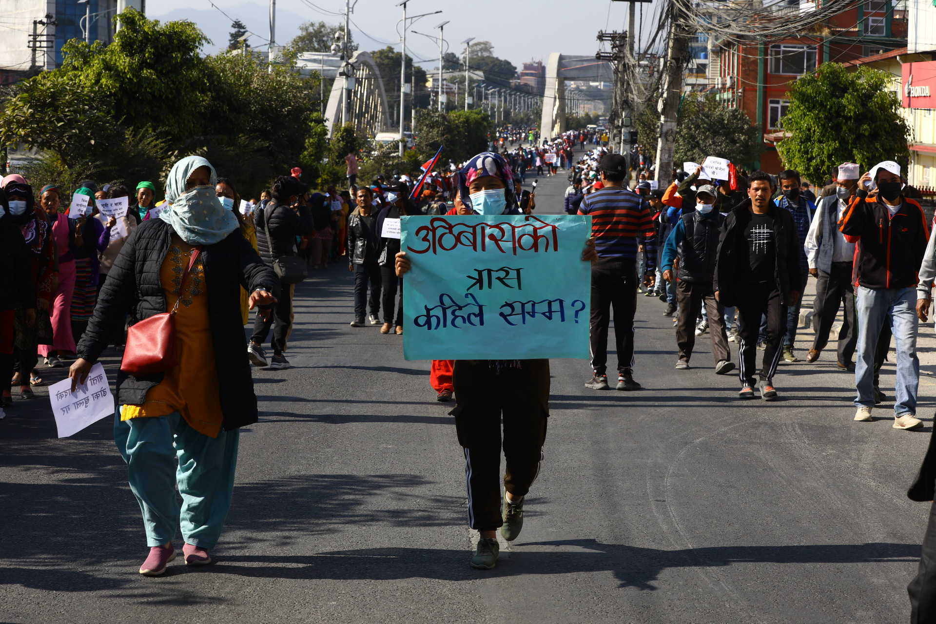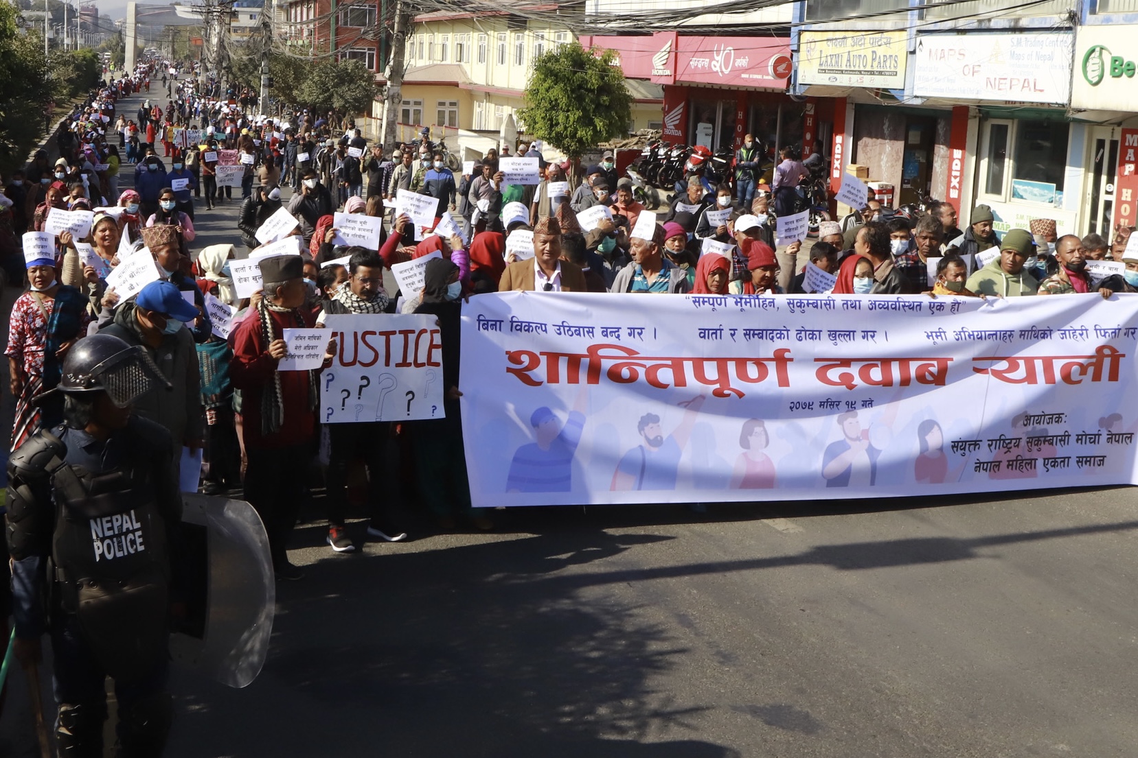 संयुक्त राष्ट्रिय सुकुमबासी मोर्चाको आव्हानमा प्रदर्शन गरिएको हो भूमीहिन, सुकुमबासीमाथि दमनकारी शैलीले आफूहरूमा त्रासफैलिएको उनीहरूको भनाइ छ । सुकुमबासी व्यवस्थापनको सवालमा आपसी समझदारी, वार्ता र छलफलको माध्यमबाट सदाकालागि समाधान खोज्न अनुरोध गरिएको छ ।