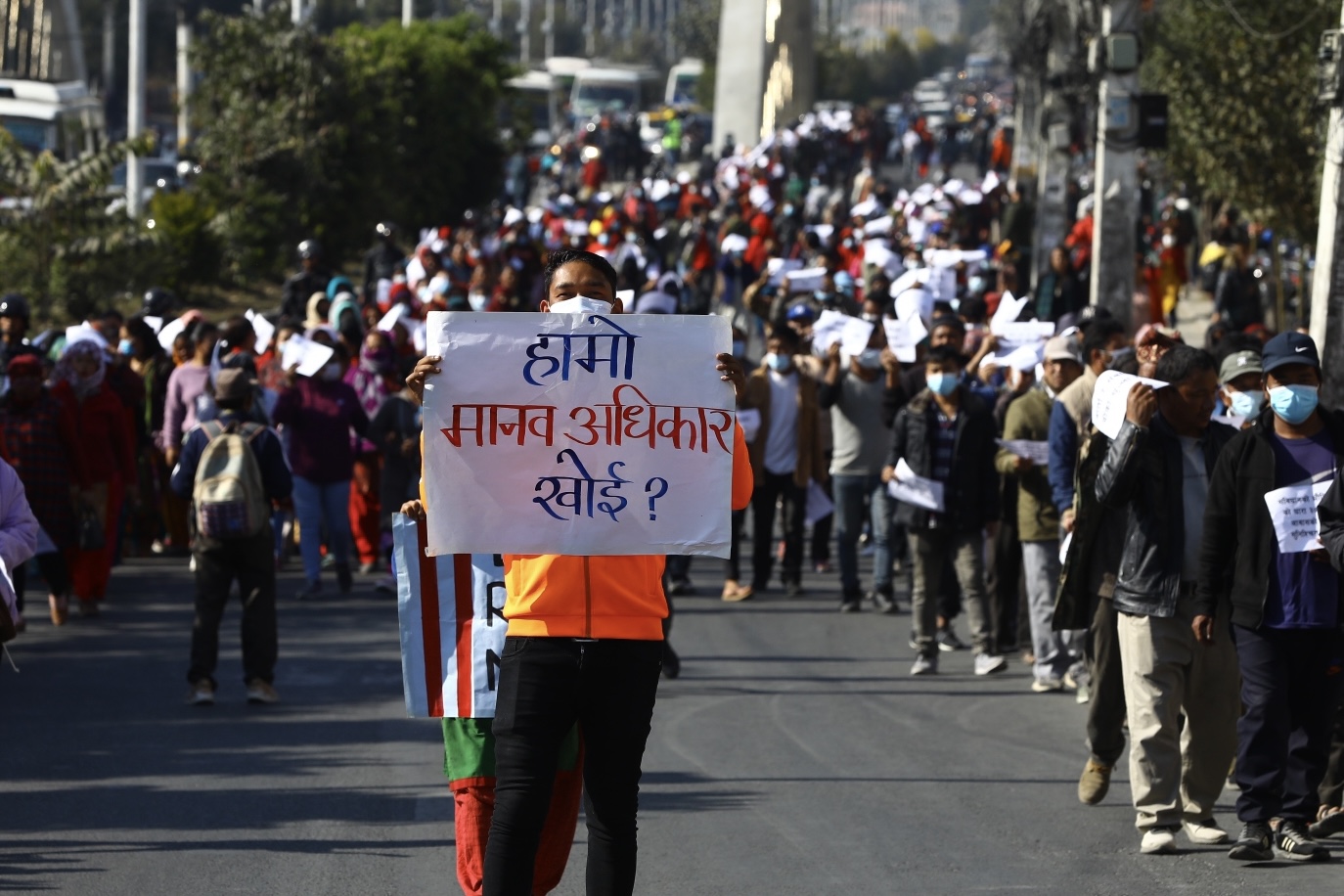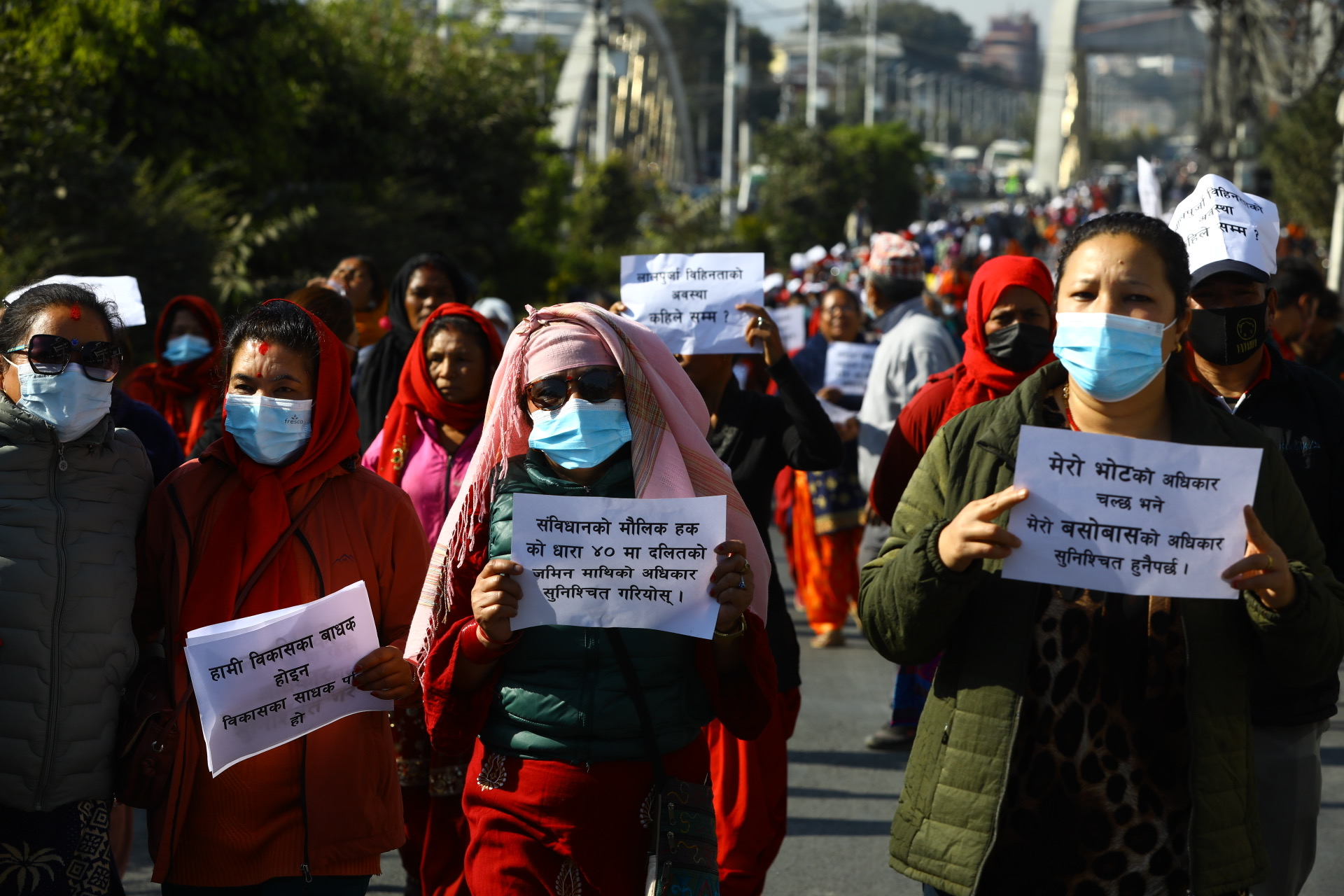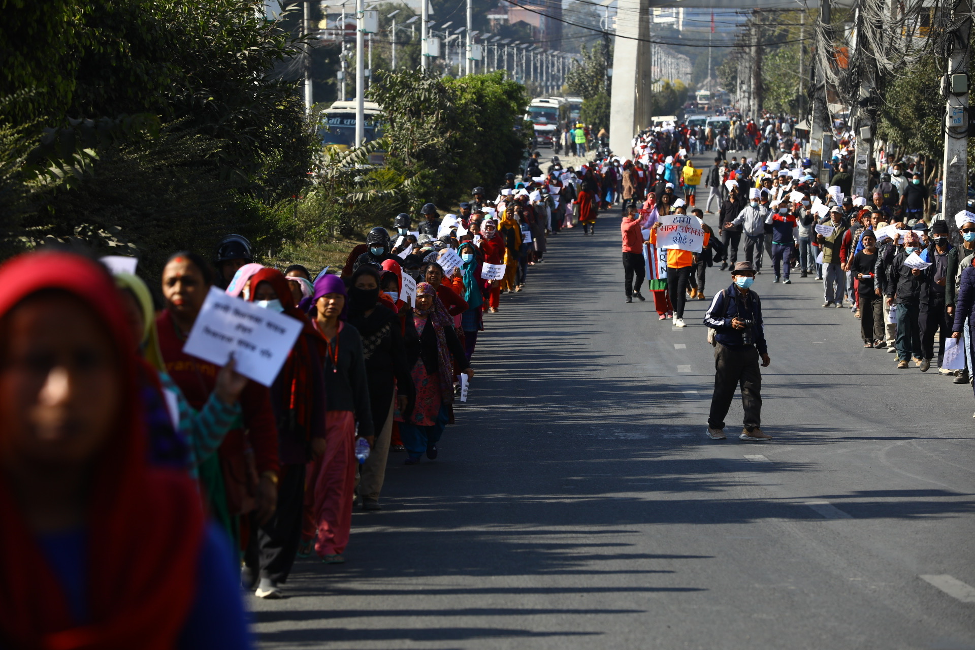 काठमाडौं । काठमाडौं महानगरपालीका थापाथलीस्थित प्रशुतीगृह पछाडी बागमती किनारामा बसेका सकुम्बासीले विभिन्न माग राखी माईतीघर मण्डलामा र्यालीसहित नयाँ बानेश्वरमा पुगी धर्ना दिएका छन् ।
