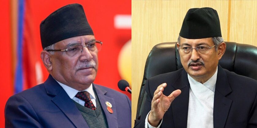 काठमाडौं । नेकपा (माओवादी केन्द्र) का अध्यक्ष पुष्पकमल दाहाल ‘प्रचण्ड’ सँग गृहमन्त्री बालकृष्ण खाणले आज भेटवार्ता गरेका छन् । ललितपुरको खुमलटारस्थित दाहाल निवासमा भएको भेटमा वर्तमान समसामयिक राजनीतिक विषयमा छलफल भएको गृहमन्त्रीका प्रेस संयोजक मधुसुदन भट्टराईले जानकारी दिए ।